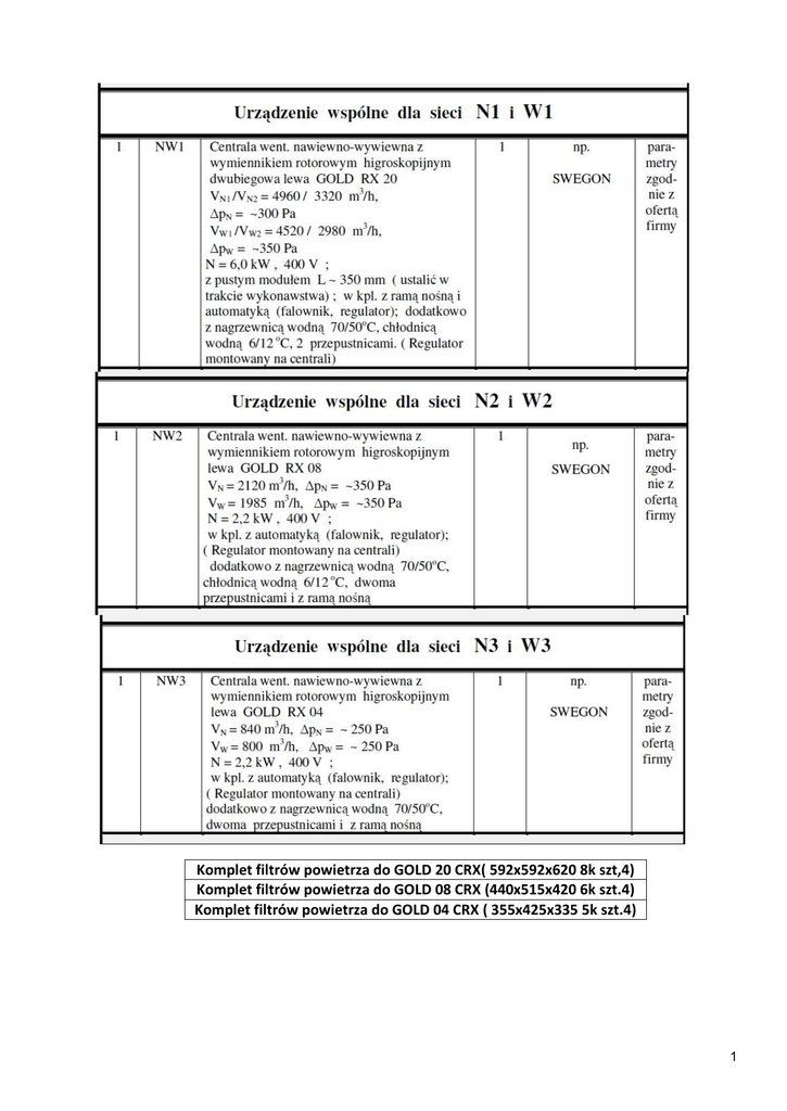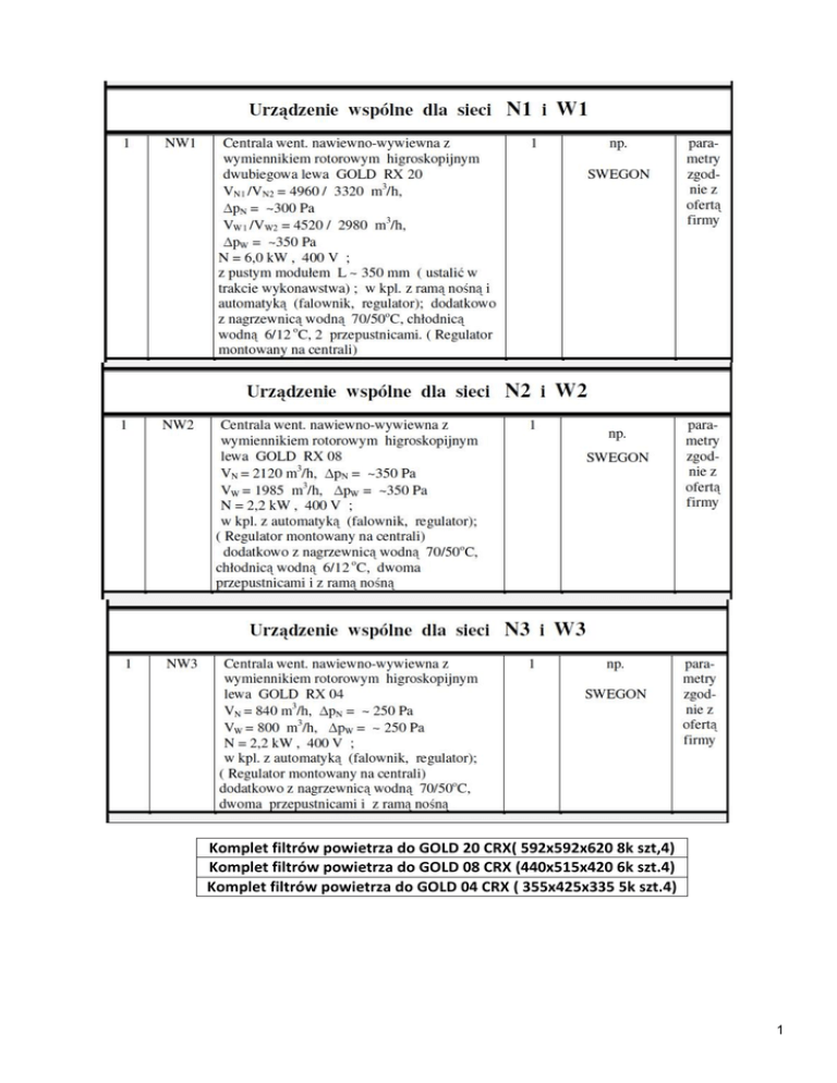 Komplet filtrów powietrza do GOLD 20 CRX( 592x592x620 8k szt,4) Komplet filtrów powietrza do GOLD 08 CRX (440x515x420 6k szt.4) Komplet filtrów powietrza do GOLD 04 CRX ( 355x425x335 5k szt.4) 1 2