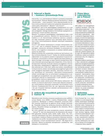 VET-NEWS news VET- news Intervet Sp. z o.o. jest światowym liderem w produkcji preparatów hormonalnych. Podczas Międzynarodowej Konferencji w Spale „Rozród psów – nowe wyzwania” firma zaprezentowała trzy dobrze znane już lekarzom weterynarii preparaty stosowane w rozrodzie psów: Delvosteron®, Mesalin® oraz Incurin®. Delvosteron® jest to lek zapobiegający występowaniu rui u suk i kotek. Jest jedynym preparatem zawierającym w swoim składzie proligeston, którego działanie minimalizuje wystąpienie ropomacicza i innych skutków ubocznych. Mesalin® to preparat zapobiegający niepożądanej ciąży u suk po przypadkowym pokryciu. Zawiera 0,2 mg benzoesanu estradiolu w 1 ml. Koncentracja substancji czynnej w preparacie daje możliwość podania suce najniższej dawki skutecznej w celu zminimalizowania efektów ubocznych stosowania estrogenów. Incurin® jest lekiem stosowanym w terapii nietrzymania moczu u suk. Jest to preparat bezpieczny (zawiera naturalny estrogen), skuteczny, ponieważ działający na przyczynę problemu, oraz wygodny w stosowaniu (w postaci tabletki podawanej raz dziennie). Główną atrakcją dla uczestników konferencji był konkurs wiedzy na temat preparatu Incurin®. Każdy, kto udzielił prawidłowej odpowiedzi na trzy pytania zawarte w specjalnym kuponie konkursowym, otrzymywał w ramach nagrody pierwsze polskie wydanie znanego i cenionego na całym świecie Kompendium Rozrodu Zwierząt opracowanego przez ekspertów z firmy Intervet. Kompendium Rozrodu Zwierząt zawiera szczegółowe informacje dotyczące następujących zagadnień: rozród pięciu gatunków zwierząt (koni, krów, świń, psów oraz kotów), prawidłowość funkcjonowania układu rozrodczego poszczególnych gatunków (wiek osiągania dojrzałości płciowej, optymalny moment krycia, stymulacja rui), schorzenia i zaburzenia funkcjonowania układu rozrodczego wraz ze schematami postępowania w poszczególnych przypadkach oraz opis zestawu preparatów hormonalnych Intervet ze wskazaniami, w jaki sposób i w jakich przypadkach można je zastosować. W konkursie wzięło udział ponad 200 lekarzy weterynarii. Na stoisku na ekranie plazmowym można było obejrzeć prezentację multimedialną dotyczącą produktów hormonalnych firmy Intervet. Przedstawiciele firmy: lek. wet. Agnieszka Jackowska i lek wet. Krzysztof Haliniarz udzielali zainteresowanym informacji na temat oferty. news Jedyna ®dla wszystkich gatunków Canvac R Wścieklizna jest chorobą wirusową wywoływaną przez ssRNA(-) wirusa Rabies virus (RABV) z rodziny Rhabdoviridae, rodzaju Lyssavirus. Występuje w siedmiu biotypach; przyczyną zakażeń zwierząt naziemnych są głównie wirusy biotypu pierwszego. Pozostałe biotypy są zazwyczaj przyczyną wścieklizny nietoperzy. Wszystkie biotypy są patogenne dla człowieka. Wirion ma kształt torpedy. Na rynku pojawiła się nowa szczepionka przeciw wściekliźnie – Canvac® R. Jest ona dopuszczona do stosowania dla wszystkich gatunków zwierząt: psów, kotów, bydła, owiec, kóz, koni, zwierząt futerkowych oraz świń. Szczepionka produkowana jest na szczepie z Instytutu Pasteura (prywatna instytucja naukowo-badawcza non-profit). Szczepionka jest hipoalergiczna i można ją stosować z innymi szczepionkami Canvac®. Ma długi termin ważności. Można ją stosować domięśniowo i podskórnie. Jest dostępna w hurtowniach. news Intervet w Spale – konkurs i prezentacja firmy Firma Idexx Laboratories już w Polsce! Jeśli zależy ci na wiarygodnych i szybkich wynikach, mamy dla ciebie dobrą wiadomość – na terenie Polski właśnie rozpoczęła swoją bezpośrednią działalność firma Idexx Laboratories – lider w dziedzinie diagnostyki laboratoryjnej, od wielu lat wspierający praktykę weterynaryjną na całym świecie. Idexx Laboratories to renomowane laboratorium, stosujące nie tylko metody licencyjne, ale także samodzielnie opracowane innowacyjne rozwiązania, dzięki czemu w swojej ofercie posiada tak unikalne badanie, jak np. spec cPL (specyficzna lipaza trzustkowa u psów) czy badanie przeciwciał anty C-6, diagnozujące boreliozę. Wszystkie badania wykonywane w Idexx Laboratories podlegają systemowi zarządzania jakością, który łączy w sobie najlepsze cechy niemieckiej precyzji z amerykańskim tempem dostarczania usługi przy wykorzystaniu nowoczesnych mediów komunikacyjnych. Jednocześnie Idexx Laboratories może pochwalić się badaniami certyfikowanymi akredytowanymi przez Unię Europejską, np. badaniem przeciwciał przeciwko wściekliźnie (w bardzo atrakcyjnej cenie). Od dwóch miesięcy Idexx Laboratories ma swoje przedstawicielstwo w Warszawie. news news WETERYNARIA W PRAKTYCE Sebostop dla psów i kotów Firma Eurowet Sp. z o.o. wprowadziła na rynek preparaty Sebostop zawierające fytosfingozynę, przeznaczone do leczenia schorzeń skóry. Substancja ta (składnik ceramidów) bierze aktywny udział w funkcjonowaniu bariery skórnej: zapewnia spójność warstwy rogowej, działa ochronnie przed wpływem czynników mechanicznych, reguluje stan nawodnienia naskórka, kontroluje stan powierzchniowej flory bakteryjnej oraz wpływa na reakcje immunologiczne i miejscowe stany zapalne. LISTOPAD-GRUDZIEŃ • 6/2007 www.weterynaria.elamed.pl 91