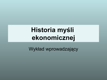 Historia myśli ekonomicznej Wykład wprowadzający Plan wykładu Zagadnienia wstępne: metodologiczny status ekonomii i znaczenie HME Prezentacja programu 30 godzinnego wykładu: główne nurty w rozwoju myśli ekonomicznej Przedmiot historii myśli ekonomicznej HME bada rozwój poglądów ekonomicznych na tle dziejów gospodarczo-społecznych i politycznych. HME jest historią ekonomii. Związana jest nie tylko z ekonomią, także z historią gospodarczą, historią doktryn politycznych, prawem, filozofią. Jaką nauką jest ekonomia? Dwa stanowiska Ekonomia jako nauka teoretyczna formułuje prawa dotyczące gospodarowania wyjaśnia rzeczywistość, jest wolna od sądów oceniających, istota badania ekonomicznego jest podobna do badania wyjaśniającego w naukach przyrodniczych. Ekonomia jako nauka społeczna i normatywna analizuje zachowania ludzi w procesie gospodarowania. ekonomiczne zachowania mają uwarunkowania etyczne, religijne, polityczne. światopoglądowo uwarunkowany jest także proces wyjaśniania zjawisk ekonomicznych Pierwsze podejście silnie zaznacza się w głównym nurcie ekonomii, najsilniejszy wyraz znalazło w rozwoju ekonomii matematycznej. Drugie dominowało w niemieckiej szkole historycznej, amerykańskim instytucjonalizmie, ekonomii marksistowskiej. Ekonomia klasyczna nosi ślady obu podejść Jaka jest współczesna ekonomia? Dominuje podejście teoretyczne (formalistyczno-matematyczne). Wysoce abstrakcyjna teoria i matematyka służy prestiżowi ekonomii. Wydaje się, że dzięki podejściu ilościowemu i matematyce ekonomia staje się bardziej naukowa, bliższa statusowi nauk przyrodniczych, wolna od ideologii. Stosowanie matematyki wywiera wrażenie nie tylko na innych, ale również na tych, którzy to robią”. Podnosi status ekonomistów i ich szacunek dla samych siebie. (T. Mayer, Prawda kontra precyzja w ekonomii, Warszawa 1996) George Stigler Nobel 1982 W przodujących ośrodkach teorii ekonomicznej najważniejsze jest pytanie: Czy nowa teoria jest poprawna logicznie? Jest to dobre pytanie, ale nie tak dobre jak drugie: Czy nowa teoria pomaga nam zrozumieć obserwowane życie gospodarcze? (George Stigler) Nowy nurt: nowa ekonomia instytucjonalna laureaci Nagrody Nobla James Buchanan 1986 Douglass North, 1993 Ronald Coase, 1991 Elinor Ostrom i Oliver. Williamson, 2009 Ułomności ekonomii z perspektywy kryzysu ekonomicznego Dwa poglądy Błędny kierunek rozwoju ekonomii • Założenie racjonalności • Brak analizy interakcji podmiotów gospodarczych i współzależności rynków • Nie poświęcano dostatecznej uwagi ułomnościom koordynacji • Nowy rodzaj inżynierii społecznej • Idea ekonomii „postautystycznej” Drugi pogląd • Problem nie polega na braku teorii, ale na niewykorzystywaniu możliwości, które stwarzają różne szkoły współczesnej myśli ekonomicznej Protest studentów i idea ekonomii postautystycznej W czerwcu 2000 roku grupa studentów prestiżowych szkół wyższych we Francji (Grandes Jedno z ostatnich zdań brzmiało: „Nie chcemy, aby nadal narzucano nam tę autystyczną Ecoles) wystąpiła z listem otwartym do profesorów i osób odpowiedzialnych za nauczanie ekonomii. W petycji sformułowano następujące hasła: • Chcemy uciec od wyimaginowanych światów! • Jesteśmy przeciw niekontrolowanemu wykorzystywaniu matematyki! • Jesteśmy zwolennikami pluralizmu podejść w ekonomii! • Apelujemy do nauczycieli: obudźcie się zanim będzie za późno! naukę”. Protest studentów zapoczątkował ruch na rzecz „postautystycznej” ekonomii. http://www.paecon.net/HistoryPAE.htm List otwarty studentów • W sierpniu 2001 r. studenci i profesorowie z 22 krajów zebrali się w Kansas City, aby wyrazić swoje stanowisko wobec metod badawczych i kształcenia w dziedzinie ekonomii. Swoje postulaty sformułowali w liście otwartym do instytucji zajmujących się badaniami i edukacją w dziedzinie ekonomii. W sześciu postulatach zwrócili uwagę na następujące uwarunkowania gospodarowania i aspekty badań ekonomicznych: 1. Szersza koncepcja człowieka i uwarunkowań jego ekonomicznych zachowań 2. Znaczenie kultury 3. Znaczenie historii 4. Nowa teoria wiedzy, odejście od dychotomii pozytywnej i normatywnej wiedzy 5. Empiryczne podstawy teorii 6. Różnorodność metod badawczych w ekonomii. http://www.btinternet.com/~pae_news/KC.htm Początki myśli ekonomicznej Starożytność i średniowiecze Początki myśli ekonomicznej Ksenofont (ok. 435 355r. p.n.e) OIKONOMIKOS Platon (427 - 347 p.n.e) Arystoteles (384 - 322 p.n. e) Św. Tomasz z Akwinu (1225 - 1274) Geneza terminu: ekonomia Ekonomia czy ekonomia polityczna Ksenofont, Oikonomikos Ksenofont (ok. 430 p.n.e. ok. 355 p.n.e.). Ateński pisarz, historyk, filozof i dowódca wojskowy, uczeń Sokratesa Oikonomikos – dzieło poświęcone zasadom zarządzania gospodarstwem domowym Oikos – dom, nomos – prawo, zasada A. Montchretien, Traktat o ekonomii politycznej , 1615 1890 Początek ekonomii jako nauki Ekonomia klasyczna Prekursorzy W. Petty, J. Locke, D. Hume, P. Boisgullebert, fizjokraci Adam Smith, Bogactwo narodów 1776 Ekonomia klasyczna i liberalizm Indywidualizm metodologiczny i światopoglądowy Interes osobisty jako motyw działania Rynkowy mechanizm alokacji zasobów Podział pracy i wolny handel Funkcje państwa Szkoły krytyczne wobec ekonomii klasycznej Niemiecka szkoła narodowa i historyczna Socjalizm i Karol Marks Instytucjonalizm amerykański Rewolucja marginalna i tendencja do formalizacji Ekonomia jako teoria wyboru i nauka o tym, jak maksymalizowana jest użyteczność Nowa teoria wartości Koncepcja równowagi Trzy szkoły: austriacka, matematyczna i neoklasyczna Szkoła austriacka – F. A. Hayek Krytyka ekonomii ortodoksyjnej: makroekonomii, metod ilościowych i formalizmu Przeciwstawienie się tendencji do centralnej regulacji Libertarianizm – zwrot ku anarchistycznej koncepcji wolnego rynku Rewolucja keynesowska Makroekonomi