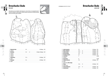 Brzuchacka Skała Brzuchacka- lewa cz. 20min 16m lewa część k la sz Skała położona jest przy niebieskim szlaku biegnącym w stronę Smolenia, ale najwygodniej dojść do niej wprost z parkingu na asfaltowej pętli, z którego wchodzimy na piaszczystą, nieoznakowaną drogę, czeka nas 20-minutowy spacer po płaskim. 1 ki Brzuchacka Skała GPS PARKINGU: N 50°25’55” E 19°36’33” es bi e ni prawa część 20min 20m Brzuchacka- prawa cz. P 1 km 0 20 22 15 24 23 24 Ka Ka 1 Karlin Karlin 2 Po Podzamcze Ry 1 3 4 5 6 7 8 9 10 11 14 12 16 17 18 19 22 20 25 21 Podzamcze 13 Ry 1 Ryczów Sm Smoleń Ol Olkusz Dł Dłubnia 72 Po Ryczów 1 2 3 4 5 6 7 8 9 10 Wybranka Franka VI.5 G. Rettinger możliwość B. Białas, G. Rettinger Bita Danka VI.5 możliwość możliwość możliwość Pasibrzuchacz VI.1+ G. Rettinger projekt Darmozjad VI.3 G. Rettinger projekt 2011 2011 2011 2011 11 12 13 14 15 16 17 18 19 20 21 22 23 24 25 Lodowi wojownicy VI.1 G. Rettinger G. Rettinger Witaj w Urdukasie VI.1+ G. Rettinger Dorota ma kota VI.2+ G. Rettinger Bal sztywniaków VI.4 Prestiżowa nagroda VI+ G. Rettinger Lewy komin V możliwość Prawy komin IV Pozłacane kalesony VI.2 G. Rettinger projekt projekt otwarty Alfa i omega G. Rettinger Omega VI.4+ projekt otwarty G. Rettinger Trawers poniżej pasa VI.2+ Absolutny pion V+ G. Rettinger 2011 2011 2011 2011 2011 lata 00. Sm Smoleń Ol Olkusz Dł Dłubnia lata 00. 2011 2011 2011 2011 73