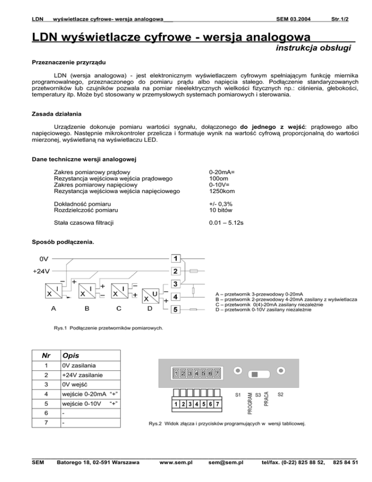 LDN wyświetlacze cyfrowe - wersja analogowa - SEM