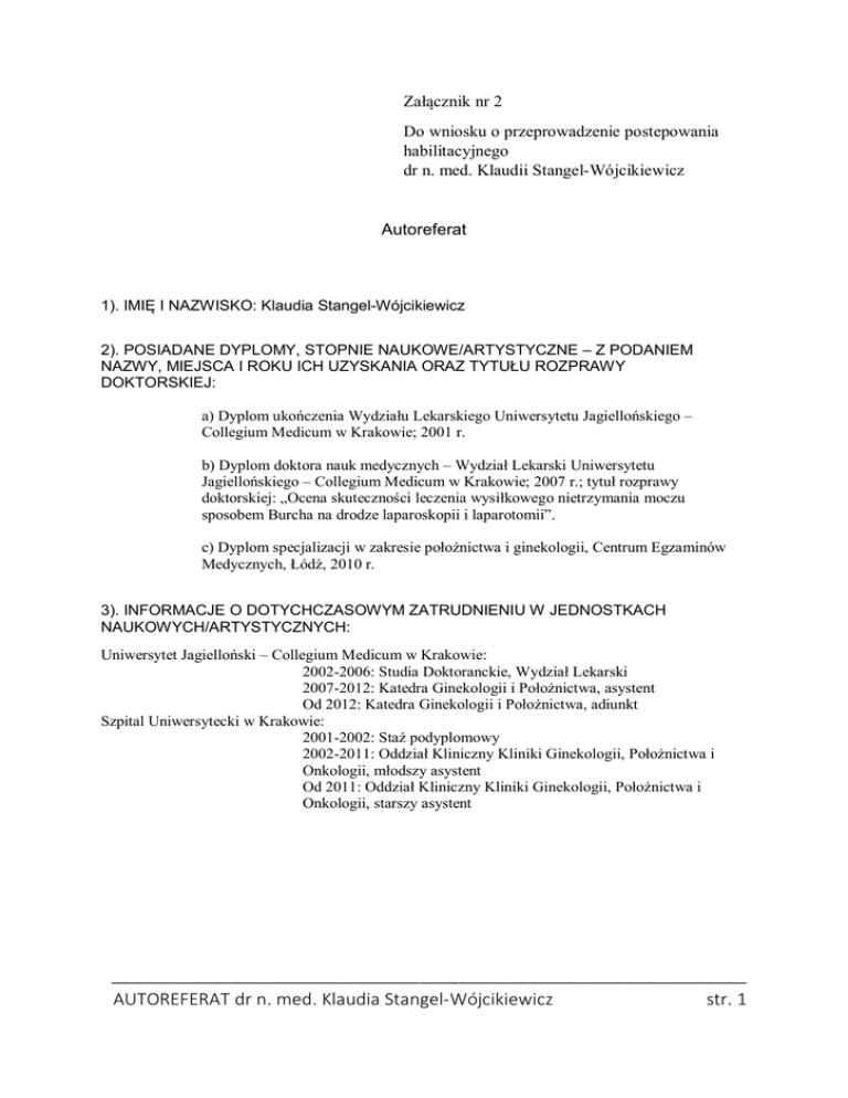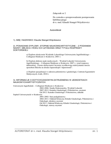 AUTOREFERAT dr n. med. Klaudia Stangel-Wójcikiewicz
