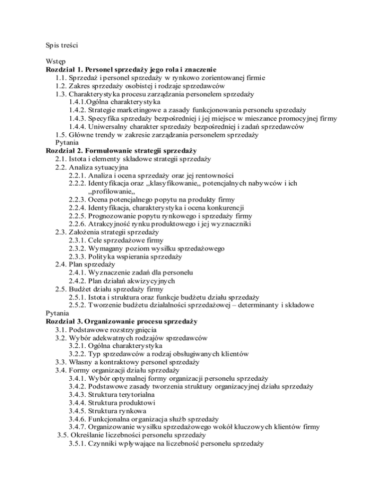 Spis treści Wstęp Rozdział 1. Personel sprzedaży jego rola i