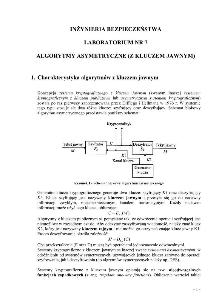 i nie moŜna go otrzymać znając klucz jawny K1.
