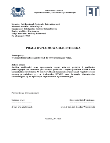 Wykorzystanie technologii HTML5 do wytwarzania gier Wideo.