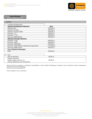 Cennik Sprzętu - Cyfrowy Polsat
