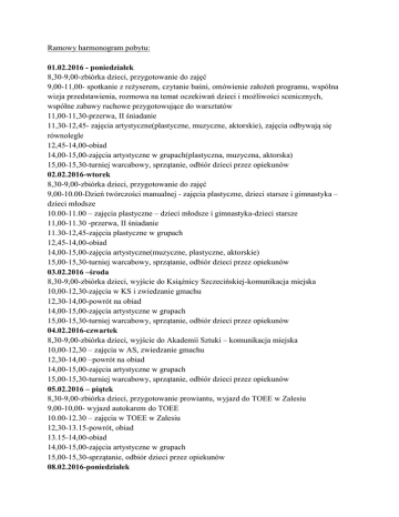 Szczegółowy harmonogram Wypoczynku