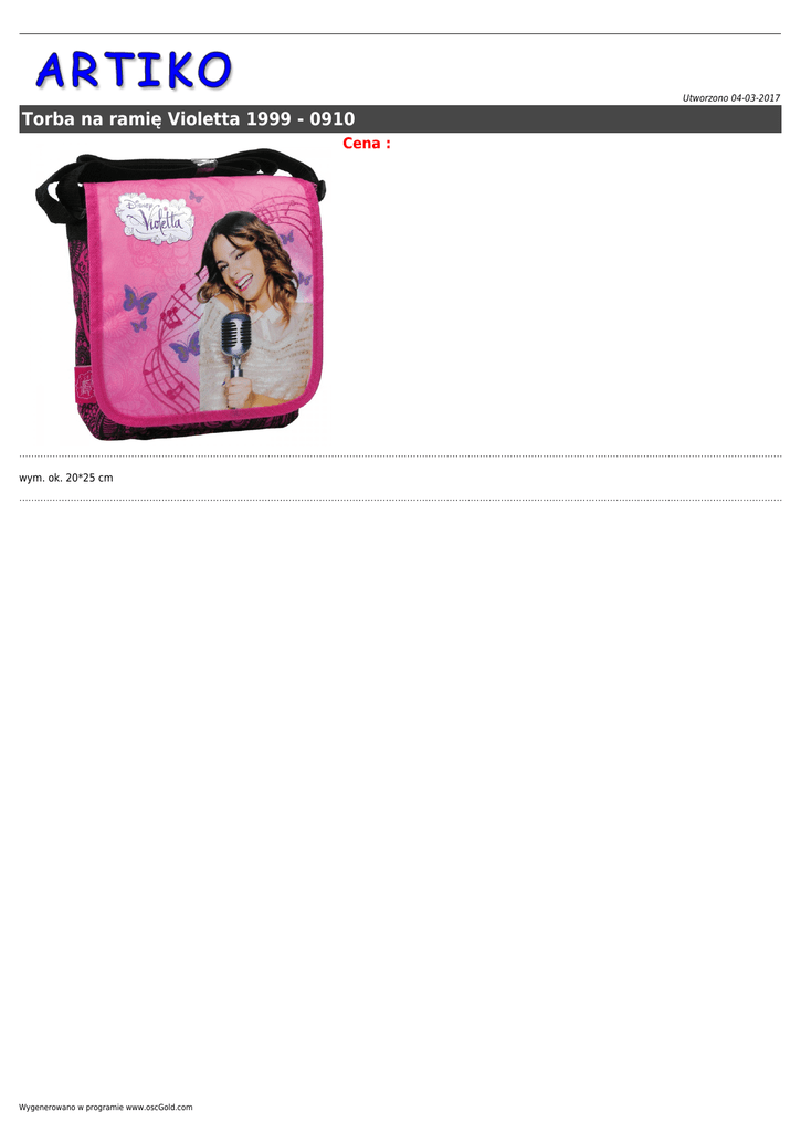 Utworzono 04-03-2017 Torba na ramię Violetta 1999 - 0910 Cena : wym. ok. 20*25 cm Wygenerowano w programie www.oscGold.com
