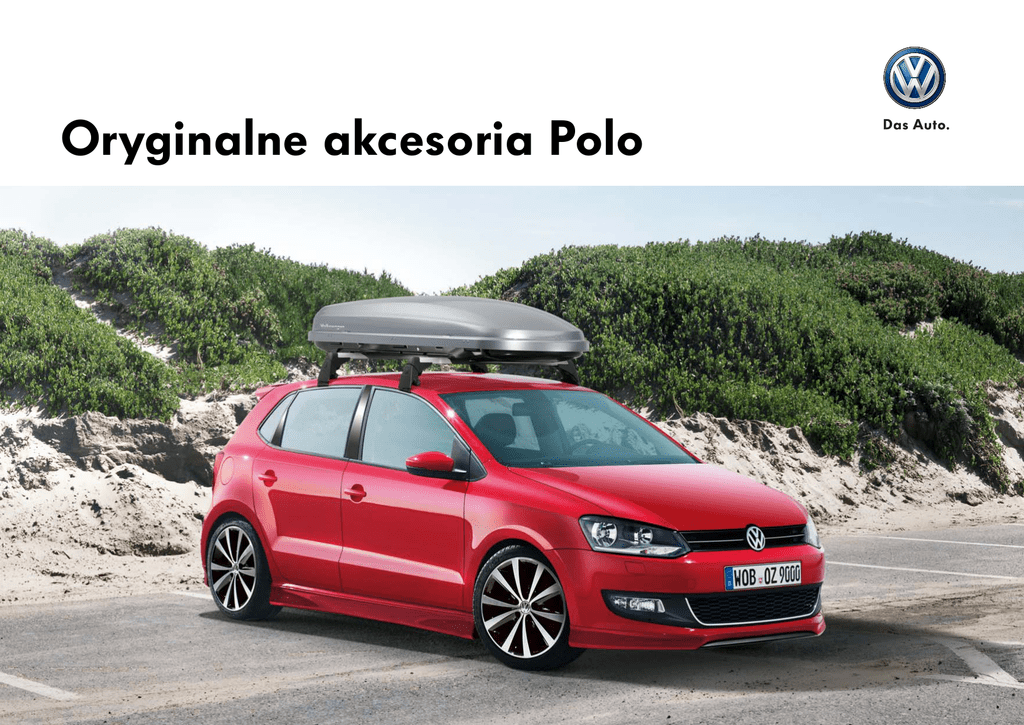 Oryginalne akcesoria Polo 04 10 16 22 32 40 44 50 Sport i design Felgi i koła Komunikacja Transport Komfort i ochrona Pielęgnacja i bezpieczeństwo Lifestyle Informacje Przedstawione w katalogu samochody zostały częściowo wyposażone w dodatkowe akcesoria. Podobnie jak pewne elementy dekoracyjne, nie są one dostępne wraz z opisanym produktem. JAKOŚCI BEZPIECZEŃSTWA VOLKSWAGENA Najważniejsze jest dla nas dążenie do perfekcji. Nasze produkty stają się coraz lepsze dzięki doskonałym materiałom, najnowszym procesom produkcyjnym oraz znakomitemu opracowaniu. Jasne zasady: wielkie osiągnięcia wymagają większego nakładu pracy. Dlatego nasze metody badawcze są jeszcze bardziej bezwzględne, nasze wymagania jeszcze wyższe, a wytyczne testów jeszcze bardziej surowe. Każde z Oryginalnych akcesoriów Volkswagen® jest rozwijane równolegle do modelu samochodu. Cel został jasno zdefiniowany: wszystko musi być perfekcyjnie dopasowane, byśmy ciągle mogli zaskakiwać Państwa jakością wykonania lub, inaczej mówiąc, by Volkswagen pozostał Volkswagenem. 02 |03 Zmysł sportowy rodzi się w Twojej głowie: w oku obserwatora Polo posiada wyjątkową cechę prezentowania siebie w sportowy sposób, którego Ty pożądasz. Dokładnie tak jak to Tobie odpowiada. Czasami jako zwinny miejski samochód, a czasami jako rasowe auto. Albo po prostu typowe Polo. Prawdziwa radość dla tych, którym nie wystarcza dynamiczna sylwetka. WSKAZÓWKA Ilustracja po lewej stronie przedstawia: Oryginalne akcesoria Volkswagen® Spoiler przedni strona 6, Oryginalne akcesoria Volkswagen® Spoiler progowy strona 6, Oryginalne akcesoria Volkswagen® Spoiler dachowy strona 7, Oryginalne akcesoria Volkswagen® Spoiler tylny z dyfuzorem strona 7, Oryginalne akcesoria Volkswagen® Felga aluminiowa „Syenit” strona 14 Aby zainstalować aplikację Volkswagen seeMore – nakieruj kamerę swojego smartphoneˇa na obraz seeMore. Sport i design 04 |05 Oryginalne akcesoria Volkswagen® Komplet spoilerów progowych (ilustracja powyżej) Podkreślają nieokiełznaną, sportową sylwetkę. Idealnie dopasowana do Polo linia spoilerów progowych stwarza optyczne wrażenie niskiego zawieszenia. Wykonane z odpornego na pęknięcia tworzywa. Przygotowane do lakierowania w kolorze nadwozia samochodu. Art. nr: 6R0 071 685 GRU Oryginalne akcesoria Volkswagen® Zestaw obniżonego podwozia (bez ilustracji) Dzięki niemu sylwetka Polo zyskuje jeszcze więcej sportowego wyglądu. Zestaw pozwala obniżyć środek ciężkości i poprawia bezpieczeństwo w trakcie przyspieszania. Oryginalne akcesoria Volkswagen® Spoiler przedni (ilustracja powyżej) Mocny akcent. Ujawnia temperament i gwarantuje sportowe doznania. Spoiler wykonany z odpornego na pęknięcia tworzywa. Przygotowany do lakierowania w kolorze nadwozia samochodu. Art. nr: 6R0 071 609 GRU Oryginalne akcesoria Volkswagen® Spoiler dachowy Uzupełnia sportową linię tylnej części samochodu. Dwa otwory spoilera podkreślają wyrazistą bryłę VW Polo. Wykonany z wytrzymałej, odpornej na uszkodzenia mechaniczne pianki poliuretanowej. Przygotowany do lakierowania w kolorze nadwozia samochodu. Art. nr: 6R0 071 646 GRU Oryginalne akcesoria Volkswagen® Listwa ozdobna w optyce chromu (ilustracja po lewej) Naklejana na dolny brzeg pokrywy bagażnika, chroni jego krawędzie. Stanowi atrakcyjne wykończenie, dodając elegancji Polo. Art. nr: 6R0 071 360 Oryginalne akcesoria Volkswagen® Spoiler tylny z dyfuzorem (ilustracja powyżej) Podkreśla wymowny charakter oraz sportową sylwetkę Polo. Wykonany z wyjątkowo odpornego na uderzenia, elastycznego tworzywa sztucznego. Przygotowany do lakierowania w kolorze nadwozia samochodu. Oryginalne akcesoria Volkswagen® Sportowa końcówka rury wydechowej (ilustracja powyżej) Sportowy wygląd w każdym elemencie! Polerowana stal szlachetna końcówki rury wydechowej Polo delikatnie podkreśla sportowy charakter samochodu i dodaje uroku tylnej części nadwozia. Art. nr: 6R0 071 610 GRU Art. nr: 6R0 071 910 Sport i design 06 |07 Oryginalne akcesoria Volkswagen® Wykończenie zewnętrznej obudowy lusterek bocznych Zapewnia wyjątkowy wygląd (optyka włókna węglowego) oraz dodatkową ochronę. Łatwy i szybki montaż na obudowie lusterka. 1 komplet = 2 sztuki. Art. nr: 6R0 072 530 Z57 Oryginalne akcesoria Volkswagen® Zestaw dekoracyjny Pakiet dekoracyjnego wykończenia wnętrza zmieni wygląd VW Polo, nadając mu szlachetny i elegancki wyraz. Elementy wykończenia w optyce włókna węglowego. Szybki i łatwy montaż. Art. nr: 6R0 072 390 Z57 Art. nr: 6R0 072 390 A Z57 wykończenie elementów nawiewów oraz klimatyzacji półautomatycznej „Climatic” wykończenie elementów klimatyzacji automatycznej „Climatronic” Oryginalne akcesoria Volkswagen® Listwa ochronna bagażnika Listwa ochronna bagażnika w kolorze stali nierdzewnej jest nie tylko ozdobą, ale również praktycznym zabezpieczeniem. Chroni krawędź bagażnika przed zarysowaniem podczas załadunku i rozładunku bagaży. Art. nr: 6R0 061 195 Oryginalne akcesoria Volkswagen® Listwy progowe ze stali szlachetnej Eleganckie listwy, wykonane ze stali szlachetnej z napisem „Polo”. Stanowią doskonałą ochronę progów podczas wsiadania i wysiadania z samochodu. Art. nr: 6R3 071 303 Art. nr: 6R4 071 303 Oryginalne akcesoria Volkswagen® Nakładki na pedały Wykonane ze stali szlachetnej wysokiej jakości. Gumowa powłoka zapewnia doskonałą przyczepność. Art. nr: 8N1 064 200 do wersji 2-drzwiowej (1 komplet = 2 sztuki) do wersji 4-drzwiowej (1 komplet = 4 sztuki) Sport i design 08| 09 Zwycięzca nigdy nie traci przyczepności Wyżej, lepiej, dalej, więcej – ważne jest, aby w świecie superlatyw nie stracić z oczu najważniejszego. Precyzja i innowacje są istotniejsze niż prędkość, a bezsporną kwestią jest bezpieczeństwo. Takie połączenie zapewnić może tylko najwyższa jakość wykonania. Tak jest w przypadku Oryginalnych akcesoriów Volksw
