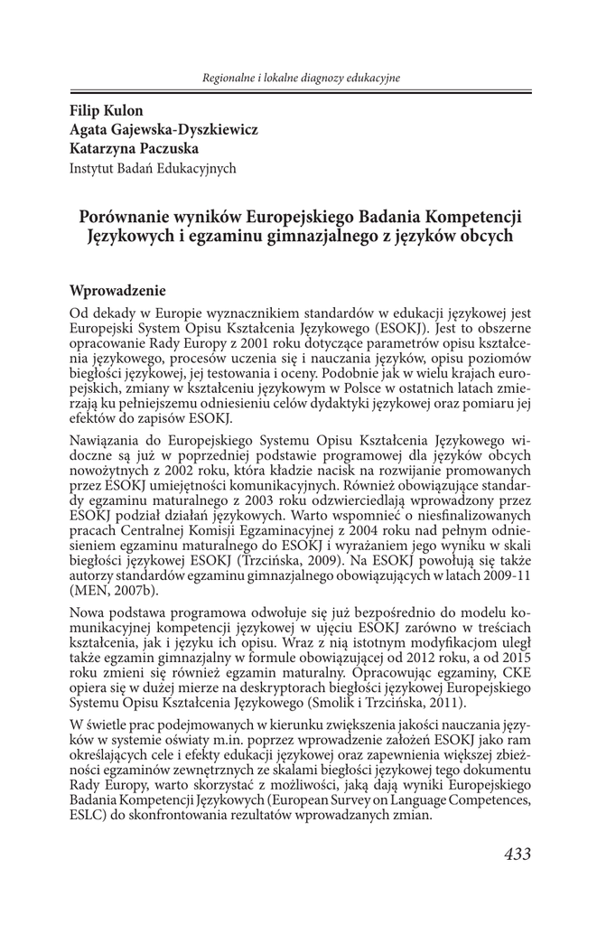 433 Porównanie wyników Europejskiego Badania Kompetencji