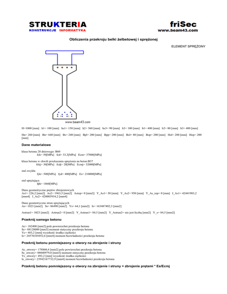 Obliczenia przekroju belki żelbetowej i sprężonej