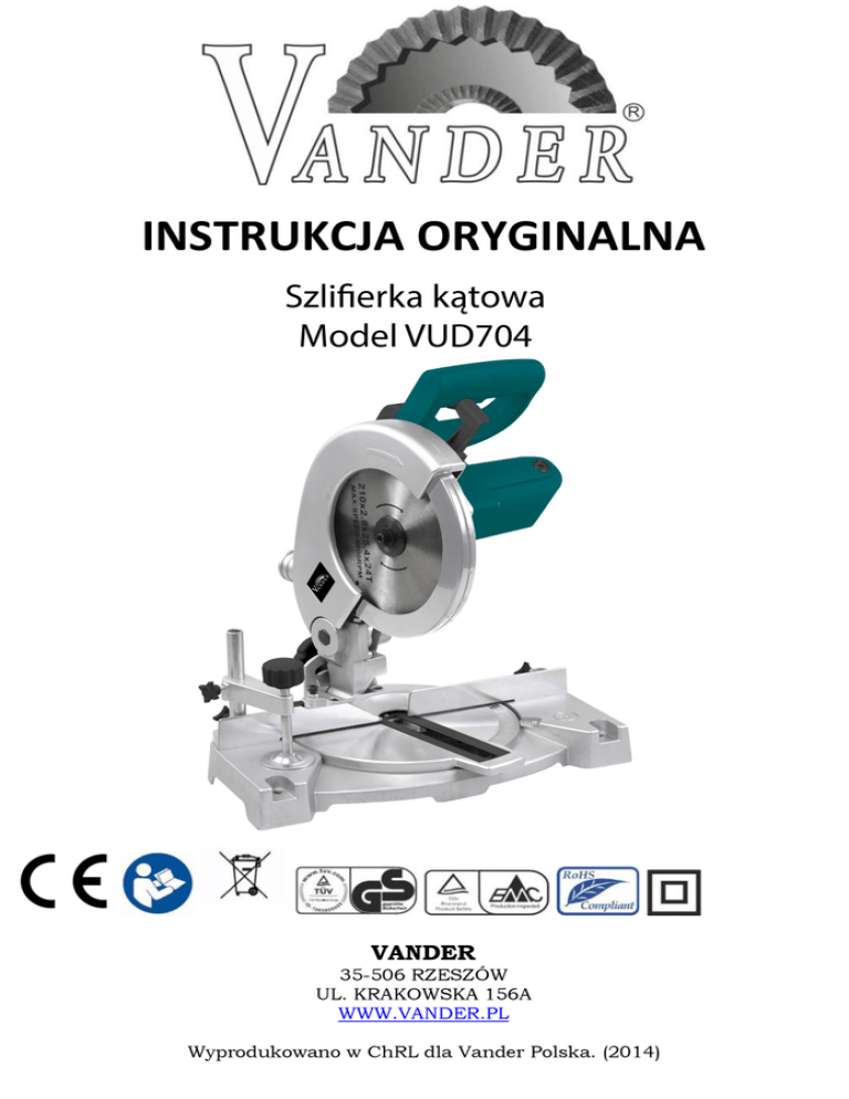 UŻYCIE ZGODNE Z PRZEZNACZENIEM Elektronarzędzie jest urządzeniem stacjonarnym, przeznaczonym do wzdłużnego i poprzecznego cięcia miękkiego i twardego drewna, paneli powlekanych i tworzyw sztucznych (jeżeli zastosowano odpowiednią piłę). Elektronarzędzie nie jest przystosowane do cięcia aluminium i innych metali nieżelaznych. WSKAZÓWKI BEZPIECZEŃSTWA Ogólne przepisy bezpieczeństwa dla elektronarzędzi Aby zabezpieczyć się przed porażeniem elektrycznym, niebezpieczeństwem skaleczenia się i groźbą pożaru podczas użytkowania elektronarzędzia należy stosować następujące podstawowe środki bezpieczeństwa. Przed przystąpieniem do użytkowania elektronarzędzia należy przeczytać wszystkie wskazówki; wskazówki bezpieczeństwa należy starannie przechowywać. Używane we wskazówkach bezpieczeństwa pojęcie „elektronarzędzie“ odnosi się do elektronarzędzi, zasilanych z sieci (z przewodem sieciowym) oraz do elektronarzędzi, zasilanych akumulatorami (bez przewodu sieciowego). 1) Bezpieczeństwo miejsca pracy a) Stanowisko pracy należy utrzymywać w czystości i dobrze oświetlone. Nieporządek w miejscu pracy lub nieoświetlona przestrzeń robocza mogą być przyczyną wypadków. b) Nie należy pracować tym elektronarzędziem w otoczeniu zagrożonym wybuchem, w którym znajdują się np. łatwopalne ciecze, gazy lub pyły. Podczas pracy elektronarzędziem wytwarzają się iskry, które mogą spowodować zapłon. c) Podczas użytkowania urządzenia zwrócić uwagę na to, aby dzieci i inne osoby postronne znajdowały się w bezpiecznej odległości. Odwrócenie uwagi może spowodować utratę kontroli nad narzędziem. 2) Bezpieczeństwo elektryczne a) Wtyczka elektronarzędzia musi pasować do gniazda. Nie wolno zmieniać wtyczki w jakikolwiek sposób. Nie wolno używać wtyków adapterowych w przypadku elektronarzędzi z uziemieniem ochronnym. Niezmienione wtyczki i pasujące gniazda zmniejszają ryzyko porażenia prądem. b) Należy unikać kontaktu z uziemionymi powierzchniami jak rury, grzejniki, piece i lodówki. Ryzyko porażenia prądem jest większe, gdy ciało użytkownika jest uziemione. c) Urządzenie należy zabezpieczyć przed deszczem i wilgocią. Przedostanie się wody do elektronarzędzia podwyższa ryzyko porażenia prądem. d) Nigdy nie należy używać przewodu do innych czynności. Nigdy nie należy nosić elektronarzędzia, trzymając je za przewód, ani używać przewodu do zawieszenia urządzenia; nie wolno też wyciągać wtyczki z gniazdka pociągając za przewód. Przewód należy chronić przed wysokimi temperaturami, należy go trzymać z dala od oleju, ostrych krawędzi lub ruchomych części urządzenia. Uszkodzone lub splątane przewody zwiększają ryzyko porażenia prądem. e) W przypadku pracy elektronarzędziem pod gołym niebem, należy używać przewodu przedłużającego, dostosowanego również do zastosowań zewnętrznych. Użycie właściwego przedłużacza (dostosowanego do pracy na zewnątrz) zmniejsza ryzyko porażenia prądem. f) Jeżeli nie da się uniknąć zastosowania elektronarzędzia w wilgotnym otoczeniu, należy użyć wyłącznika ochronnego różnicowo-prądowego. Zastosowanie wyłącznika ochronnego różnicowo prądowego zmniejsza ryzyko porażenia prądem. 3) Bezpieczeństwo osób a) Podczas pracy z elektronarzędziem należy zachować ostrożność, każdą czynność wykonywać uważnie i z rozwagą. Nie należy używać elektronarzędzia, gdy jest się zmęczonym lub będąc pod wpływem narkotyków, alkoholu lub lekarstw. Moment nieuwagi przy użyciu elektronarzędzia może stać się przyczyną poważnych urazów ciała. b) Należy nosić osobiste wyposażenie ochronne i zawsze okulary ochronne. Noszenie osobistego wyposażenia ochronnego – maski przeciwpyłowej, obuwia z podeszwami przeciwpoślizgowymi, kasku ochronnego lub środków ochrony słuchu (w zależności od rodzaju i zastosowania elektronarzędzia) – zmniejsza ryzyko obrażeń ciała. c) Należy unikać niezamierzonego uruchomienia narzędzia. Przed włożeniem wtyczki do gniazdka i/lub podłączeniem do akumulatora, a także przed podniesieniem lub przeniesieniem elektronarzędzia, należy upewnić się, że elektronarzędzie jest wyłączone. Trzymanie palca na wyłączniku podczas przenoszenia elektronarzędzia lub podłączenie do prądu włączonego narzędzia, może stać się przyczyną wypadków. d) Przed włączeniem elektronarzędzia, należy usunąć narzędzia nastawcze lub klucze. Narzędzie lub klucz, znajdujący się w ruchomych częściach urządzenia mogą doprowadzić do obrażeń ciała. e) Należy unikać nienaturalnych pozycji przy pracy. Należy dbać o stabilną pozycję przy pracy i zachowanie równowagi. W ten sposób możliwa będzie lepsza kontrola elektronarzędzia w nieprzewidzianych sytuacjach. f) Należy nosić odpowiednie ubranie. Nie należy nosić luźnego ubrania ani biżuterii. Włosy, ubranie i rękawice należy trzymać z daleka od ruchomych części. Luźne ubranie, biżuteria lub długie włosy mogą zostać wciągnięte przez ruchome części. g) Jeżeli istnieje możliwość zamontowania urządzeń odsysających i wychwytujących pył, należy upewnić się, że są one podłączone i będą prawidłowo użyte. Użycie urządzenia odsysającego pył może zmniejszyć zagrożenie pyłami. 4) Prawidłowa obsługa i eksploatacja elektronarzędzi a) Nie należy przeciążać urządzenia. Do pracy używać należy elektronarzędzia, które są do tego przewidziane. Odpowiednio dobranym elektronarzędziem pracuje się w danym zakresie wydajności lepiej i bezpieczniej. b) Nie należy używać elektronarzędzia, którego włącznik/wyłącznik jest uszkodzony. Elektronarzędzie, którego nie można włączyć lub wyłączyć jest niebezpieczne i musi zostać naprawione. c) Przed regulacją urządzenia, wymianą osprzętu lub po zaprzestaniu pracy narzędziem, należy wyciągnąć wtyczkę z