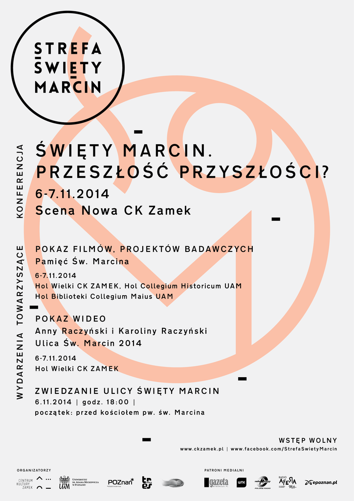 KONFERENCJA W YDA RZE NIA TOWARZ YSZĄCE Ś WI ĘT Y MARC I N . PRZESZŁOŚ Ć PRZ YSZ ŁOŚ C I? 6-7.11.2014 Scena Nowa CK Zamek P OK A Z FILMÓW, PROJEK TÓW BADAWCZ YCH P amięć Św. Mar cina Ulic a k siąże k 6-7.11.2014 Hol Wielki CK ZAMEK , Hol Collegium Historicum UAM Hol Biblioteki Collegium Maius UAM SOBOTA 10-05-2014 g. 15-22 Ulica Marcin Z WIEDZ ANIE ULICYŚwięty ŚWIĘT Y MARCIN P OK A Z WIDEO Anny Racz yńs k i i K aroliny Racz yńs k i Ulic a Św. Mar cin 2014 6-7.11.2014 Hol Wielki CK ZAMEK 6 .11 .2014 | g odz . 18 :00 | począte k : pr zed koś ciołem pw. ś w. Mar cina WS TĘP WO L NY w w w. c k z a m e k . pl | w w w. fa c e b ook . c om / St r efa Sw i et y M ar ci n O RGA N IZ ATORZ Y PATRO N I M E D IA L N I Współpraca : Manufaktura Cukierków Karmelkowo, Pralnia Samoobsługowa, Klub Czytelnia, Fusion Hostel oraz księgarnie : KIK , Kluboksięgarnia Głośna, Omnibus, Świat Książki, Ale Książka! , Skład Kulturalny Aktualna rola i miejsce ulicy Święty Marcin w Poznaniu, będącej odniesieniem projektu „Strefa Św. Marcin” realizowanego przez Centrum Kultury ZAMEK – koordynatora idei rewitalizacji ulicy Św. Marcin w Poznaniu w ramach miejskiego „Zintegrowanego Programu Odnowy i Rozwoju dla Śródmieścia Poznania na lata 2014 - 2030”, jest wypadkową historycznych i współczesnych uwarunkowań jej rozwoju. Przez wieki był to główny ciąg komunikacyjny podpoznańskiej osady Św. Marcin, od której przyjął nazwę po włączeniu jej w obręb miasta w końcu XVIII w. W XIX wieku ulica Św. Marcin prowadziła na zachód ku szosie berlińskiej i z czasem połączyła miasto z kolejnymi dworcami kolejowymi. W początkach XX w. nabrała reprezentacyjnego charakteru pruskich/niemieckich manifestacji imperialnych. Krótki, ale ożywczy dla ulicy Św. Marcin okres dwudziestolecia międzywojennego, stał się przedmiotem nostalgicznych wspomnień o ulicy tej jako przestrzeni przyjaznej poznaniakom, pełnej sklepów i sklepików, hoteli i restauracji, jako centrum życia uniwersyteckiego. Po zakończeniu II wojny światowej ulicy Św. Marcin, przynajmniej w sensie administracyjnym, w Poznaniu nie było. Istniała natomiast ulica Armii Czerwonej. Ta nazwa, silnie identyfikowana z okresem PRL, jest dziś, zwłaszcza oficjalnie, niechętnie wspominana. Tymczasem właśnie wtedy ulica zmieniła się najbardziej, a to dzięki gruntownej przebudowie jej środkowego odcinka. Czy i jaka przeszłość, historia i pamięć, określają dziś charakter ulicy Św. Marcin? Na ile pytanie o przyszłość ulicy warunkuje myślenie w kategoriach rewitalizacji jej dawnych funkcji i powrotu do historycznych elementów jej społeczno-kulturowej tożsamości, na ile zaś wymaga wprowadzenia elementów zupełnie nowych, nieobecnych dotąd? ŚW. MARC I N . ROZ P OZ NA N IE PRZESZŁO Ś C I Co składa się na historyczny obraz ulicy św. Marcin? Jak poradzić sobie ze złożoną, także (nie)miejską, przeszłością tej ulicy? Które z jej historycznych funkcji, przeobrażeń, jakim podlegała, z wydarzeń, dla których była sceną lub osób z nią związanych, mogą okazać się dziś kluczowe? Na czym polegać może ich kulturotwórcza, integracyjna lub identyfikacyjna rola? Kto lub co w tej przeszłości najsilniej zapisuje się dziś w narracjach historycznych i praktykach pamięci kulturowej? Jak badać przeszłość ulicy miejskiej i jak ją prezentować? ŚW. MARC I N . A K T UA L IZ ACJE PRZESZŁO Ś C I W jaki sposób odnosimy się dziś najczęściej do przeszłości ulicy św. Marcin? Kiedy i dla kogo staje się ona ważna? Jakie elementy tej przeszłości są podejmowane, a jakie wypierane we współczesnych praktykach społeczno-kulturowych? Jak można ją wykorzystać w aktualnych działaniach rewitalizacyjnych na potrzeby organizowanych tu wydarzeń, w projektach animujących aktywność mieszkańców, w definiowaniu nowych funkcji ulicy, które odpowiadać będą na potrzeby różnych użytkowników przestrzeni miejskiej? Jakie są warunki, kryteria i ograniczenia twórczych, ale zarazem krytycznych aktualizacji przeszłości we współczesnych praktykach i projektowaniu zmiany dla ulicy św. Marcin? ŚWIĘ T Y MARCIN . PRZESZ ŁOŚĆ PRZ YSZ ŁO ŚCI? 07.11.2014 (PIĄTEK) | Scena Nowa 06.11.2014 (CZWARTEK) | Scena Nowa Ś WI ĘT Y MARC IN . PRZESZŁOŚĆ PRZ YSZŁOŚC I? Poznań 6-7.11.2014 Scena Nowa CK Zamek ORGANIZATORZY Instytut Historii Uniwersytet im. Adama Mickiewicza Centrum Kultury ZAMEK WSPÓŁPRACA Instytut Filologii Polskiej UAM Instytut Socjologii UAM Instytut KulturoznawstwaUAM Fundacja TRES Wielkopolska Biblioteka Cyfrowa KOMITET NAUKOWO - ORGANIZACYJNY Izabela Skórzyńska (IH UAM), Maciej Michalski (IH UAM), Dorota Grobelna (CK ZAMEK, Strefa Św. Marcin), Justyna Budzińska (IH UAM) WSPÓŁPRACA Konrad Białecki (IH UAM, IPN), Jolanta Mazurek (WBC), Wojciech Olejniczak (Fundacja TRES), Jakub Skutecki (BU Poznań), Łukasz Rogowski (IS UAM), Jerzy Borowczyk (IFP UAM) 1 Wykorzystano artykuły składające się na tom monograficzny „Kroniki Miasta Poznania” „Święty Marcin” 2006/1. Zwłaszcza artykuły: Jacka Wiesiołowskiego, Magdaleny Warkoczewskiej i Grażyny Kodym-Kozaczko. D Z I E Ń D RU G I D Z IE Ń PIE RWS Z Y KO N F ERENCJA Charakter dzisiejszej ulicy Św. Marcin określa w pierwszym rzędzie, mocno motywowana historycznie, jej funkcja reprezentacyjna, w tym propagandowa, defiladowa, widowiskowa, świąteczna, świecka i religijna. To tutaj przezcały wiek XX, aż do dziś, manifestowała się i manifestuje potęga władz lokalnych, regionalnych, prowincjonalnych, krajowych, polskich, pruskich, niemieckich, komunistycznych, demokratycznych. To tutaj mieszkańcy miasta deklarowali swoje poparcie lub odmowę dla tych jakże różnych w różnym czasie manifestacji. Niemniej istotny dla historii średniego trwania ulicy Św. Marcin jest spór o jej funkcje: handlową, biznesową, rekreacyjną, kulturalną, z których żadna, 