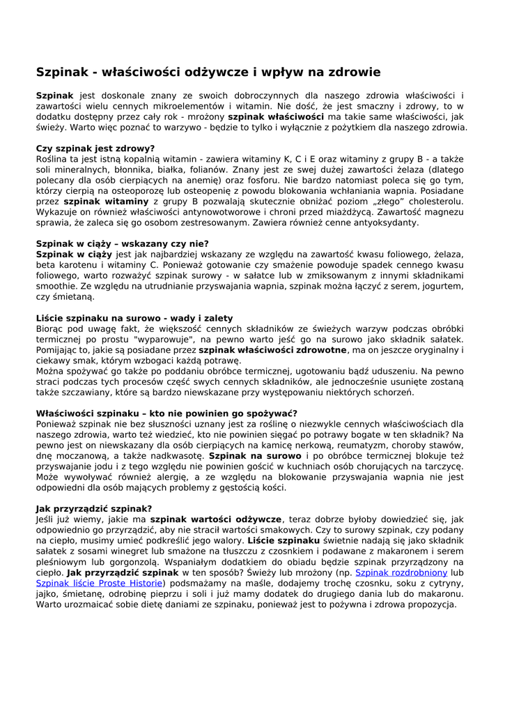 Szpinak - właściwości odżywcze i wpływ na zdrowie