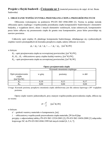 Projekt z fizyki budowli - Ćwiczenie nr 1 (materiał pomocniczy do