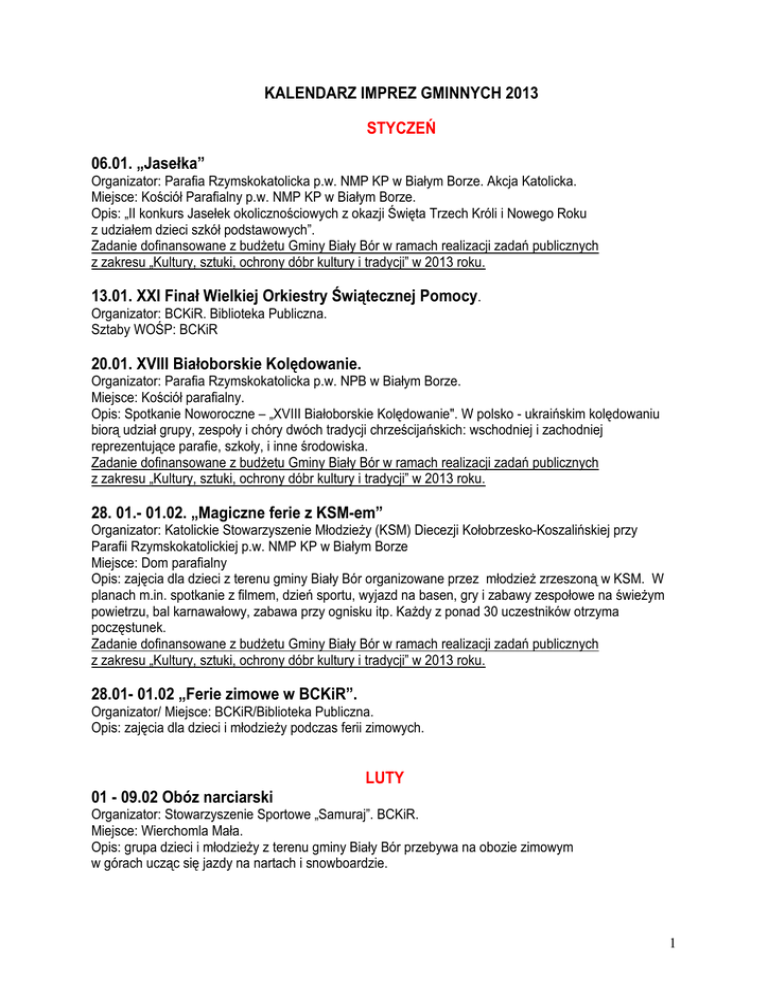 Kalendzarz imprez 2013 - Miasto i Gmina Biały Bór