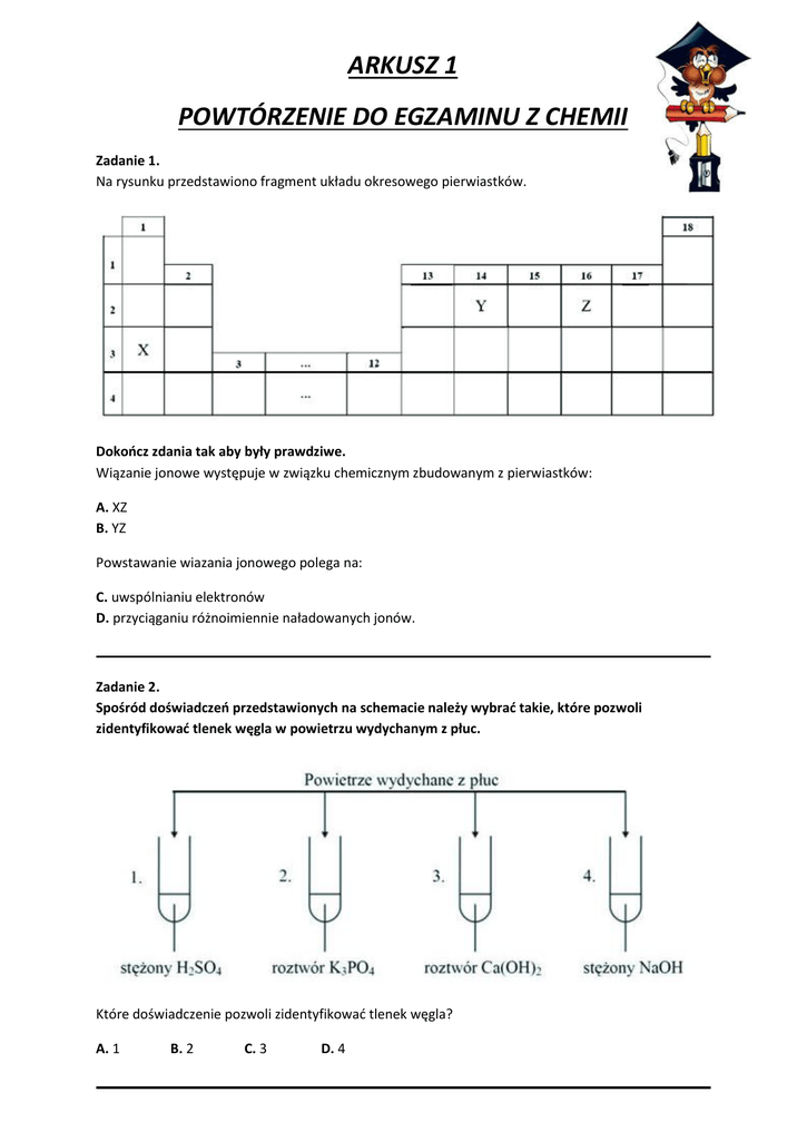 ARKUSZ 1 POWTÓRZENIE DO EGZAMINU Z CHEMII