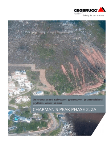 Ochrona przed spływami gruzowymi (rumowisko) i płytkimi osuwiskami CHAPMAN'S PEAK PHASE 2, ZA CHAPMAN'S PEAK PHASE 2 Ochrona przed spływami gruzowymi (rumowisko) i płytkimi osuwiskami Projekt Numer projektu miejsce kraj/region Chapman's Peak Phase 2 J15-50012 Chapman's Peak Drive, Western Cape Południowa Afryka Rok instalacji 2015 Projektowanie Wykonawca Melis & du Plessis; Geobrugg AG Penny Farthing Situation Chapman's Peak Drive winds its way between Noordhoek and Hout Bay on the Atlantic Coast on the south-western tip of South Africa. It is one of the most spectacular marine drives in the world and affectionately known to locals as Chappies. Early in 2015 severe damage was caused on Chapman's Peak Drive as a result of fires that raged in the area. The fire caused extensive loss of vegetation which acts as the slope's natural soil stabilisation mechanism in terms of rockfall and debris attenuation. Consequent release of previously trapped and accumulated rock debris within the vegetation, rendering them potentially mobile during episodes of strong winds and/or rainfall had necessitated the City to implement measures that would ensure that the road stays open. The landslide and debris flow barriers installed are the first installations of this kind on the African continent. opis Five debris flow barriers and four landslide barriers were installed on Chapman's Peak. Chroniony Objekt Systemy Road UX160-H4, TECCO ® G65/4, SL-150 Ochrona przed spływami gruzowymi (rumowisko) i płytkimi osuwiskami | Chapman's Peak Phase 2, ZA 2/5 Ochrona przed spływami gruzowymi (rumowisko) i płytkimi osuwiskami | Chapman's Peak Phase 2, ZA 3/5 Ochrona przed spływami gruzowymi (rumowisko) i płytkimi osuwiskami | Chapman's Peak Phase 2, ZA 4/5 W razie pytań prosimy o kontakt ze specjalistą Geobrugga. Eberhard Gröner Project Manager North-West Germany, Regional Manager UK Phone +41 71 466 81 57 Mobile +41 79 421 17 01 [email protected] Geobrugg AG Aachstrasse 11 | 8590 Romanshorn | Szwajcaria [email protected] | www.geobrugg.com Ein Unternehmen der Gruppe BRUGG | ISO 9001 zertifiziert Ochrona przed spływami gruzowymi (rumowisko) i płytkimi osuwiskami | Chapman's Peak Phase 2, ZA 5/5