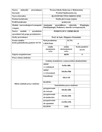 podstawy chirurgii - Wyższa Szkoła Medyczna w Białymstoku