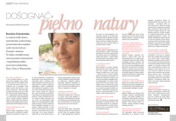 kobiety nas inspirujĄ piękno natury doścignąć |Rozmawia Elżbieta Jeznach| Karolina Sobolewska to mama trójki dzieci, instruktorka nurkowania, przewodniczka miejska i pilot wycieczek po Europie i świecie. To także certyfikowany rzeczoznawca diamentów i współwłaścicielka pracowni jubilerskiej Złoto-Orla w Warszawie. Jak zostaje się jubilerem? U nas to kwestia rodzinna, no i oczywiście dość długiego czasu. Potrzeba było wielu lat, by powstała firma w jej obecnej formie. Pyta pani o jubilerstwo, ale w przypadku mojej rodziny chodzi tutaj również o złotnictwo. Pracownia i sklep Złoto-Orla powstały dość dawno, bo już w 1983 roku, kiedy mój tato, Maciej Sobolewski – z wykształcenia inżynier metalurg – po wielu latach nauki jubilerskiego fachu u różnych mistrzów i zdobyciu dyplomu Mistrza Rzemiosła Artystycznego otworzył najpierw pracownię, a później sklep, które działają do dzisiaj. W latach 80. była pani małą dziewczynką. Właśnie wtedy, podpatrując trochę tatę przy pracy z palnikiem, mogłam przyjrzeć się, przekonać z bliska, o co 46 to całe zamieszanie z jubilerstwem. Kiedy byłam mała, jeszcze zanim powstał sklep, razem z siostrami uwielbiałyśmy sięgać po albumy taty o biżuterii. Było ich mnóstwo. Godzinami oglądałyśmy zdjęcia przepięknych kolii, królewskich naszyjników z dawnych epok, diamentowych pierścionków i innych cudów. Ten zachwyt jest chyba zrozumiały dla wszystkich, nawet dużych już dzisiaj dziewczynek (śmiech). Z kolei te bardziej techniczne, fachowe książki oczywiście bawiły mniej, ale wprowadzały jakąś tajemnicę i wywoływały głód wiedzy. Zresztą podczas spotkań rodzinnych temat jubilerstwa przewijał się nieustannie. Dzięki Złoto-Orlej w życiu moim i moich sióstr było sporo podróżowania, poznawania innych kultur, nauki tego, co po sobie zostawiły, i dzięki temu ja i moje siostry nosimy w ale wiem, że moja przygoda z nurkowaniem jeszcze się nie skończyła. Podwodny świat to zupełnie inna bajka. Każdy koral, nietypowa formacja skalna czy barwy i kształty ryb przypominają nam, że my, ludzie, nigdy nie stworzymy takich cudów. Nawet jako jubilerzy? Jubilerzy, złotnicy bezpośrednio tworzący biżuterię to artyści. Oczywiście posiłkujemy się naturą, zresztą wszystkie używane przez nas materiały powstały setki tysięcy, a nawet miliony lat przed ludźmi. My, jubilerzy, próbujemy doścignąć piękno natury. Czy jubiler jest trochę marzycielem? sobie podróżniczego bakcyla. Wraz z siostrą zostałyśmy przewodniczkami po Warszawie, następnie pilotami wycieczek, zdobyłam certyfikaty na nurka, skończyłam geologię, później kursy rzeczoznawstwa diamentów w Polsce, a następnie w Antwerpii Została pani nurkiem? Rekreacyjnie, jak rozumiem? Nurkować zaczęłam już w 1993 roku, w czasach, gdy sprzęt dostępny w Polsce był na tyle siermiężny i tak ciężki, że zejście pod wodę przypominało film o komandosach. To nie był sport tak popularny, jak to jest obecnie. A jak jest teraz? Teraz mam trójkę dzieci, najmłodsze niedługo skończy pół roku. Nurkowanie być może nie wszystkim kojarzy się z odpowiedzialnością (śmiech), Bycie jubilerem to przede wszystkim precyzowanie celów, zaufanie i wiedza. Ale marzenia, takie zupełnie ludzkie, też grają rolę w moim życiu i pchają mnie do przodu. Będąc jeszcze nastolatką, pracowałam we Francji jako opiekunka, wtedy po raz pierwszy zobaczyłam alpejskie szczyty, przemierzałam na nartach doliny, zakochałam się w tym miejscu i przyrzekłam sobie, że kiedyś tam wrócę. To było moje marzenie. Wróciłam tam już w czasach, gdy byłam pilotem wycieczek i studiowałam geologię. Kolejny raz w Alpy pojechałam z moim mężem, czysto przyjemnościowo. Patrzy pani na góry okiem geologa? Nie, to nie jest tak, że wszędzie widzę geologiczne formacje (śmiech). Na góry patrzę raczej jak na wyzwanie: czy da się zjechać tu, czy tam, jak jeździ się w puchu na stromiźnie, co jest po drugiej stronie góry… Czyli jest to freeride? Tak, poza trasą jest najciekawiej. Ra- czej nie ma tam dużo ludzi i można pozostać sam na sam z górą. Zawsze zresztą zmrożony i skrzący się śnieg kojarzył mi się z diamentami. Mówi pani o podwodnych czy górskich przygodach, tymczasem świat szlachetnych kamieni i diamentów kojarzy się raczej z poważnymi starszymi panami w ciemnych garniturach, gdzieś w Antwerpii. (śmiech) Owszem, poznałam tych panów, o których pani mówi. Ale świat diamentów czy w ogóle kamieni jubilerskich takich jak rubiny, szafiry, szmaragdy, turmaliny, ametysty… jest przecież bardzo ekscytujący. Do wiedzy o tym, jak one powstawały przez tysiące lat, do znajomości ich wartości rynkowej i wreszcie wyceny dochodzi również sposób oprawienia ich w pięknej biżuterii. Sądzę, że wszyscy eksperci kamieni szlachetnych w głębi duszy patrzą na nie oczami artystów. Jak odczuwa pani zmiany zachodzące w branży jubilerskiej? Dobrze, że są ludzie, których stać na dobra luksusowe, ale od jakiegoś czasu widzimy trend, który bardziej odpowiada potrzebie dzisiejszych czasów. Co to takiego? Większa refleksja przy zakupie, która pomaga dokonać przemyślanego wyboru, oraz przede wszystkim personalizacja. Wielu klientów odkrywa, że pozwalając sobie na jakiś wyrób jubilerski, może również nadać mu unikalny, osobisty charakter, według własnego pomysłu. Jak rozumiem, pani pracownia podejmuje takie wyzwania? Jak najbardziej. Nasza pracownia specjalizuje się w biżuterii na indy- widualne zamówienia. Mamy na przykład klienta, który zamówił u nas zawieszkę – monogram. Teraz co roku przychodzi w okolicach swojej rocznicy ślubu i dokłada do zawieszki jeden diamencik. Oprócz tego sami tworzymy unikalne wyroby, np. całą kolekcję muzyczną – broszki i zawieszki w kształcie instrumentów, czy serię bursztynowo-srebrnych korków do karafek. Re