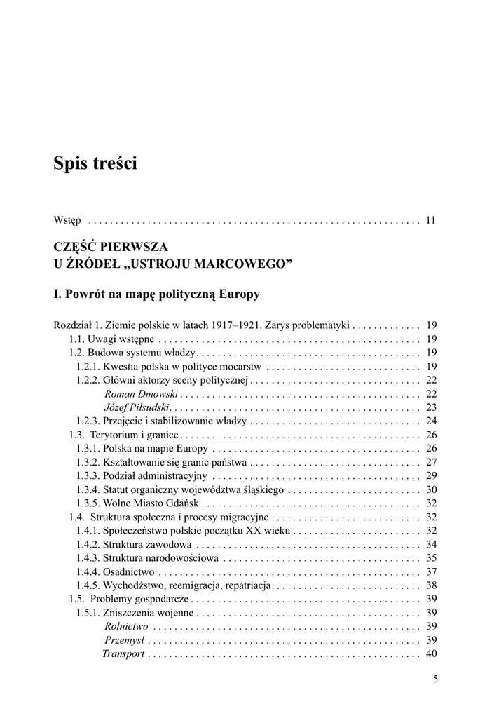 Spis treści Wstęp . . . . . . . . . . . . . . . . . . . . . . . . . . . . . . . . . . . . . . . . . . . . . . . . . . . . . . . . . . . . . . 11 CZĘŚĆ PIERWSZA U ŹRÓDEŁ „USTROJU MARCOWEGO” I. Powrót na mapę polityczną Europy Rozdział 1. Ziemie polskie w latach 1917–1921. Zarys problematyki . . . . . . . . . . . . . 1.1. Uwagi wstępne . . . . . . . . . . . . . . . . . . . . . . . . . . . . . . . . . . . . . . . . . . . . . . . . . 1.2. Budowa systemu władzy. . . . . . . . . . . . . . . . . . . . . . . . . . . . . . . . . . . . . . . . . . 1.2.1. Kwestia polska w polityce mocarstw . . . . . . . . . . . . . . . . . . . . . . . . . . . . . 1.2.2. Główni aktorzy sceny politycznej . . . . . . . . . . . . . . . . . . . . . . . . . . . . . . . . Roman Dmowski . . . . . . . . . . . . . . . . . . . . . . . . . . . . . . . . . . . . . . . . . . . . . Józef Piłsudski. . . . . . . . . . . . . . . . . . . . . . . . . . . . . . . . . . . . . . . . . . . . . . . 1.2.3. Przejęcie i stabilizowanie władzy . . . . . . . . . . . . . . . . . . . . . . . . . . . . . . . . 1.3. Terytorium i granice . . . . . . . . . . . . . . . . . . . . . . . . . . . . . . . . . . . . . . . . . . . . . 1.3.1. Polska na mapie Europy . . . . . . . . . . . . . . . . . . . . . . . . . . . . . . . . . . . . . . . 1.3.2. Kształtowanie się granic państwa . . . . . . . . . . . . . . . . . . . . . . . . . . . . . . . . 1.3.3. Podział administracyjny . . . . . . . . . . . . . . . . . . . . . . . . . . . . . . . . . . . . . . . 1.3.4. Statut organiczny województwa śląskiego . . . . . . . . . . . . . . . . . . . . . . . . . 1.3.5. Wolne Miasto Gdańsk . . . . . . . . . . . . . . . . . . . . . . . . . . . . . . . . . . . . . . . . . 1.4. Struktura społeczna i procesy migracyjne . . . . . . . . . . . . . . . . . . . . . . . . . . . . 1.4.1. Społeczeństwo polskie początku XX wieku . . . . . . . . . . . . . . . . . . . . . . . . 1.4.2. Struktura zawodowa . . . . . . . . . . . . . . . . . . . . . . . . . . . . . . . . . . . . . . . . . . 1.4.3. Struktura narodowościowa . . . . . . . . . . . . . . . . . . . . . . . . . . . . . . . . . . . . . 1.4.4. Osadnictwo . . . . . . . . . . . . . . . . . . . . . . . . . . . . . . . . . . . . . . . . . . . . . . . . . 1.4.5. Wychodźstwo, reemigracja, repatriacja. . . . . . . . . . . . . . . . . . . . . . . . . . . . 1.5. Problemy gospodarcze . . . . . . . . . . . . . . . . . . . . . . . . . . . . . . . . . . . . . . . . . . . 1.5.1. Zniszczenia wojenne . . . . . . . . . . . . . . . . . . . . . . . . . . . . . . . . . . . . . . . . . . Rolnictwo . . . . . . . . . . . . . . . . . . . . . . . . . . . . . . . . . . . . . . . . . . . . . . . . . . Przemysł . . . . . . . . . . . . . . . . . . . . . . . . . . . . . . . . . . . . . . . . . . . . . . . . . . . Transport . . . . . . . . . . . . . . . . . . . . . . . . . . . . . . . . . . . . . . . . . . . . . . . . . . . 19 19 19 19 22 22 23 24 26 26 27 29 30 32 32 32 34 35 37 38 39 39 39 39 40 5 1.5.2. Problemy skarbowości . . . . . . . . . . . . . . . . . . . . . . . . . . . . . . . . . . . . . . . . 1.5.3. Różnice dzielnicowe . . . . . . . . . . . . . . . . . . . . . . . . . . . . . . . . . . . . . . . . . . 1.5.4. Lata gospodarki wojennej . . . . . . . . . . . . . . . . . . . . . . . . . . . . . . . . . . . . . . 1.5.5. Inflacja . . . . . . . . . . . . . . . . . . . . . . . . . . . . . . . . . . . . . . . . . . . . . . . . . . . . . 41 42 43 45 Rozdział 2. Przebieg prac ustrojodawczych . . . . . . . . . . . . . . . . . . . . . . . . . . . . . . . . . 47 2.1. Uwagi wstępne . . . . . . . . . . . . . . . . . . . . . . . . . . . . . . . . . . . . . . . . . . . . . . . . . 47 2.2. Projekty konstytucji z 1917 roku . . . . . . . . . . . . . . . . . . . . . . . . . . . . . . . . . . . 48 2.2.1. Wprowadzenie . . . . . . . . . . . . . . . . . . . . . . . . . . . . . . . . . . . . . . . . . . . . . 48 2.2.2. Projekt tymczasowej ustawy zasadniczej . . . . . . . . . . . . . . . . . . . . . . . . 49 2.2.3. Projekt konstytucji Królestwa Polskiego . . . . . . . . . . . . . . . . . . . . . . . . . 51 2.3. Projekty ustawy zasadniczej z 1919 roku (styczeń–październik). . . . . . . . . . . 55 2.3.1. Wprowadzenie . . . . . . . . . . . . . . . . . . . . . . . . . . . . . . . . . . . . . . . . . . . . . . 55 2.3.2. Projekty Biura Konstytucyjnego (styczeń–marzec 1919) . . . . . . . . . . . . . 58 Projekt amerykański . . . . . . . . . . . . . . . . . . . . . . . . . . . . . . . . . . . . . . . . . 59 Projekt ludowy . . . . . . . . . . . . . . . . . . . . . . . . . . . . . . . . . . . . . . . . . . . . . 59 Projekt francuski . . . . . . . . . . . . . . . . . . . . . . . . . . . . . . . . . . . . . . . . . . . . 61 2.3.3. Projekty poprzedzające prace parlamentarne (marzec–kwiecień 1919) . . . . . . . . . . . . . . . . . . . . . . . . . . . . . . . . . . . . . . 64 Projekt Ankiety . . . . . . . . . . . . . . . . . . . . . . . . . . . . . . . . . . . . . . . . . . . . . 65 Pierwszy projekt prywatny . . . . . . . . . . . . . . . . . . . . . . . . . . . . . . . . . . . . 66 Projekty ruchu ludowego oraz deklaracja rządowa . . . . . . . . . . . . . . . . . 69 2.3.4. Projekty zgłoszone przez posłów (maj 1919) . . . . . . . . . . . . . . . . . . . . . . 71 2.3.5. Drugi projekt prywatny (październik 1919) . . . . . . . . . . . . . . . . . . . . . . 73 2.4. Projekty rządowe z lat 1919–1920. . . . . . . . . . . . . . . . . . . . . . . . . . . . . . . . . . . 76 2.4.1. Drugi projekt rządu Ignacego Paderewskiego (listopad 1919) . . . . . . . . . . . . . . . . . . . . . . . . . . . . . . . . . . . . . . . . . . . . . 76 2.4.2. Korekta projektu rządowego dokonana przez gabinet Leopolda Skulskiego (styczeń 1920) . . . . . . . . . . . . . . . . . . . . . . . . . . . . 78 2.5. Projekt Komisji Konstytucyjnej Sejmu Ustawodawczego . . . . . . . . . . . . . . . . 81 2.6. Prace konstytucyjne Sejmu Ustawodawczego (lipiec 1920–marzec 1921) . .
