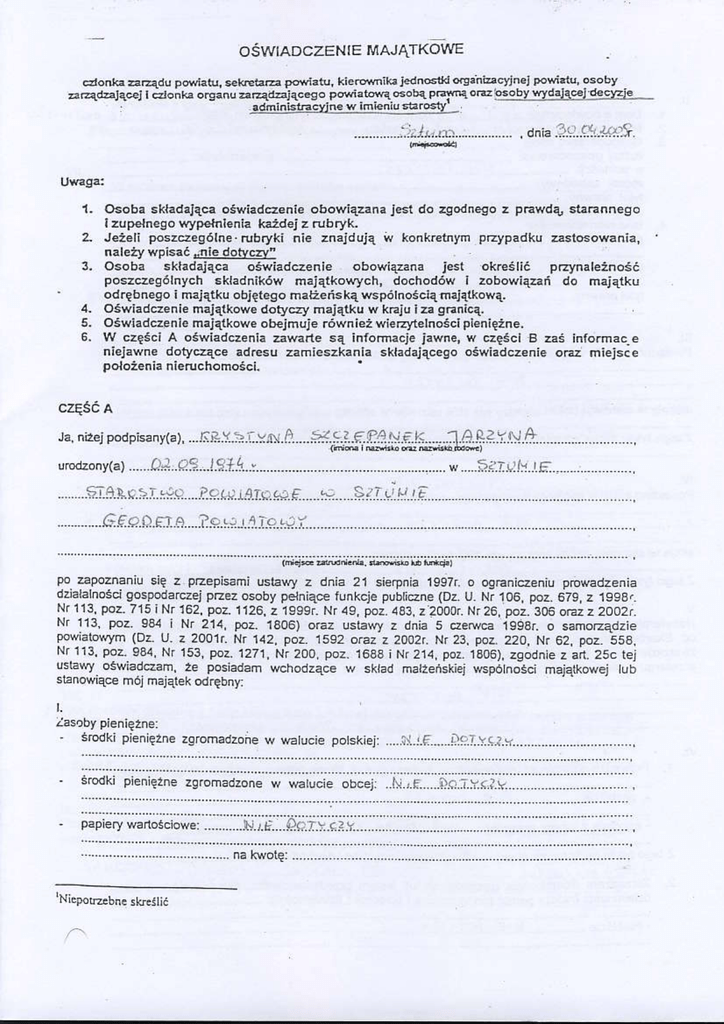 z Jeieli poszd€s6lne rubryki ni. znajduj1 w konkelnyfr pzypadku astosovaoi:,