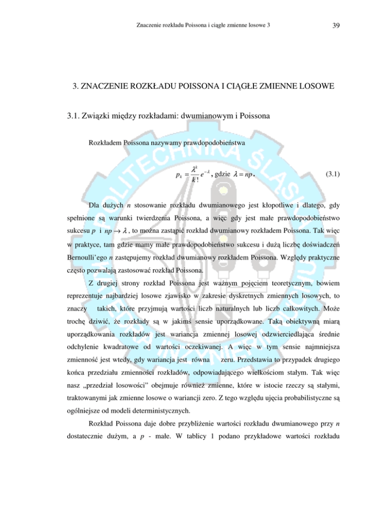 Znaczenie rozkładu Poissona i ciągłe zmienne losowe