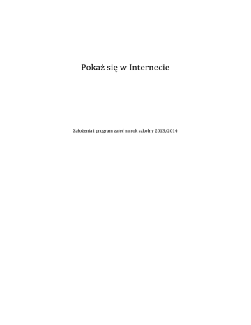 Pokaż się w Internecie Założenia i program zajęć na rok szkolny 2013/2014 1. Charakterystyka zajęć Zajęcia dodatkowe Pokaż się w Internecie skierowane są do uczniów wszystkich klas Gimnazjum. Odbywają się w ramach zajęć pozalekcyjnych, raz w tygodniu, w wymiarze jednej godziny zegarowej. Zajęcia mają na celu zapoznanie uczniów ze sposobami tworzenia i działania stron internetowych. Uczeń pozna również historię Internetu, podstawy budowy i funkcjonowanie globalnej sieci. Po zakończeniu zajęć Pokaż się w Internecie, uczeń będzie potrafił stworzyć stronę internetową o wybranej tematyce, z użycie m. in. HTML, CSS, PHP, jQuery, baz danych (PostgreSQL) oraz samodzielnie stworzonych elementów graficznych. Uczeń pozna programy takie jak NetBeans, WinSCP, pgAdmin, GIMP. Uczniowie na zajęciach pracują samodzielnie, wyniki pracy prezentowane będą na forum grupy. Na zajęciach nie stosuje się typowych ocen szkolnych. Funkcję oceny spełnia pochwała, satysfakcja z osiąganych przez ucznia wyników czy możliwość zaprezentowania w szerszym gronie stworzonych projektów. Uczeń jest w ten sposób dowartościowany, zaspokaja swoją ambicję, może rozwijać się twórczo, w podejmowanych działaniach wykazuje dużą samodzielność, kreatywność i konsekwentność. 2. Cele zajęć rozbudzenie zainteresowania tworzeniem stron internetowych rozwinięcie umiejętności kreatywnego i analitycznego myślenia rozwinięcie umiejętności planowania kształcenie umiejętności poszukiwania w Internecie informacji poznanie mechanizmów działania stron internetowych poznanie podstaw języków użytecznych przy tworzeniu stron internetowych poznanie oprogramowania pozwalającego na budowanie stron internetowych poznanie podstaw relacyjnych baz danych poznanie podstawowych konstrukcji programistycznych stworzenie przez ucznia strony internetowej o wybranej tematyce motywacja do dalszego kształcenia 3. Formy realizacji zajęć wykład praca indywidualna praca z komputerem praca zespołowa 4. Program zajęć Szczegółowy program zajęć i tempo przerabiania materiału zostaną dostosowane do grupy zajęciowej. Omówienie całego zaplanowanego materiału nie jest najważniejszym celem zajęć – zdecydowanie istotniejsze jest dobre opanowanie zagadnień przez uczniów i umiejętność ich zastosowania w praktyce. W przypadku, gdy grupa wykaże większe zainteresowanie którymś z proponowanych tematów, możliwe jest poświęcenie mu większej ilości czasu. Proponowane zagadnienia omawiane na zajęciach Pokaż się w Internecie: Historia sieci Internet, idee budowy i podstawowe zasady działania. Serwer, domena, hosting: gdzie umieszczać stronę internetową? HTML: komendy, składnia, tworzenie prostej strony internetowej. Podstawy grafiki komputerowej: tworzenie własnego logo, dobór kolorystyki strony internetowej, umieszczanie grafiki na stronie internetowej. CSS: składnia, zastosowanie. PHP: komendy, składnia języka, podstawowe konstrukcje programistyczne: pętle, instrukcje warunkowe, stosowanie zmiennych. Sesja PHP: mechanizmy przekazywania danych pomiędzy stronami, logowanie użytkowników. jQuery: wykorzystanie jQuery do urozmaicenia strony internetowej, dostosowywanie skryptów jQuery do swoich potrzeb. Podstawy relacyjnych baz danych PostgreSQL: idea stosowania bazy danych, podstawy konstrukcji bazy, wykorzystanie bazy danych do budowy strony internetowej. Własny projekt strony internetowej o wybranej przez ucznia tematyce z wykorzystaniem poznanych narzędzi.
