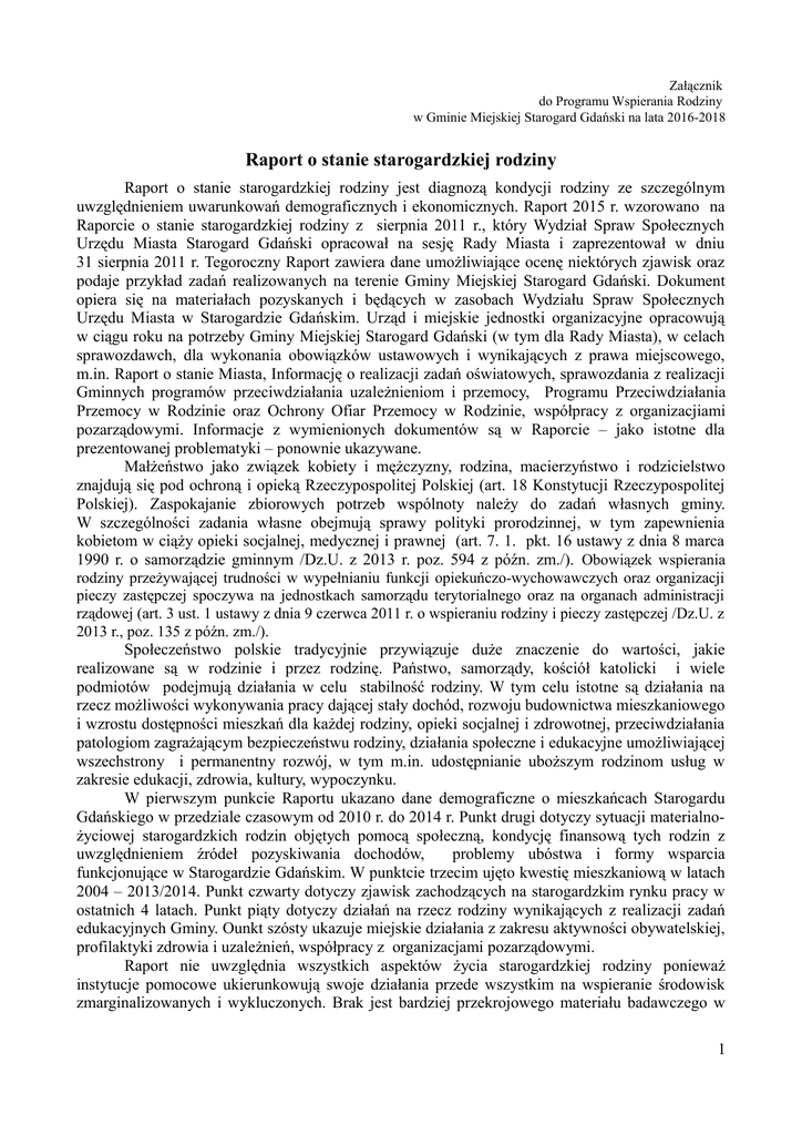 Raport o stanie starogardzkiej rodziny