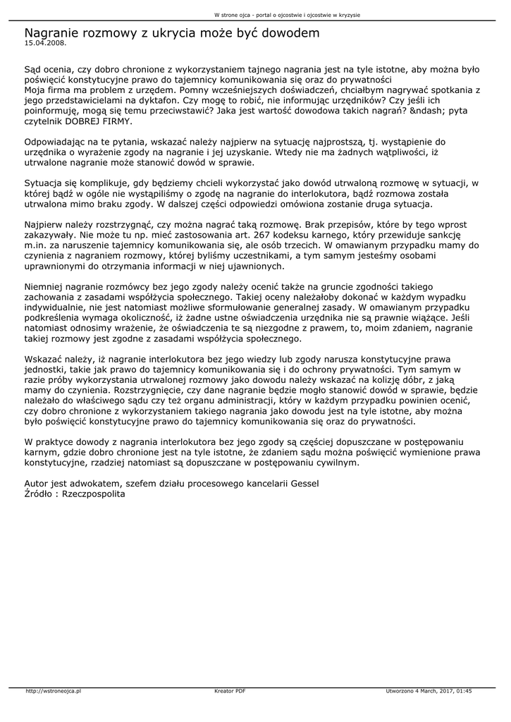 Nagranie rozmowy z ukrycia mo e być dowodem
