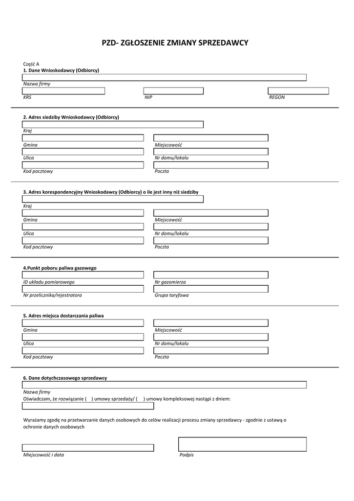 PZD- ZGŁOSZENIE ZMIANY SPRZEDAWCY