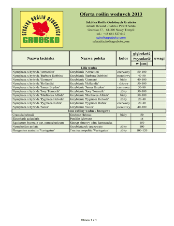 Oferta roślin wodnych 2013 - Szkółka Roślin Ozdobnych Grubsko
