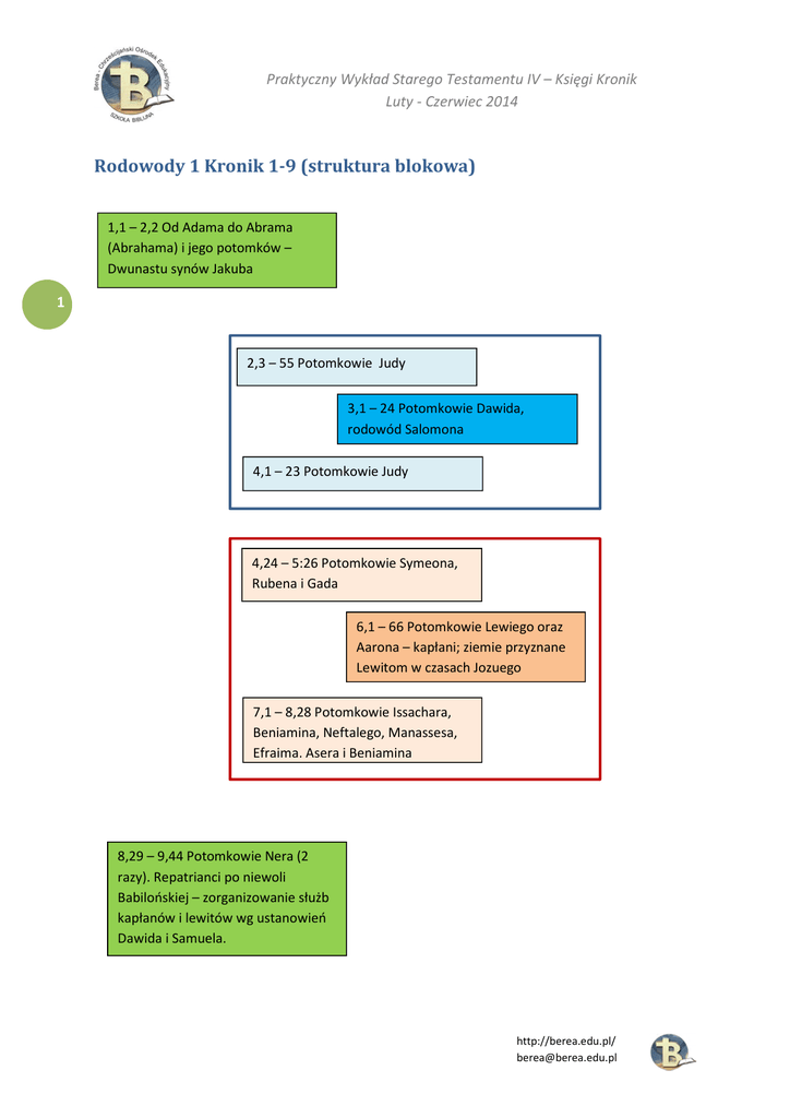Rodowody 1 Kronik 1-9 (struktura blokowa)