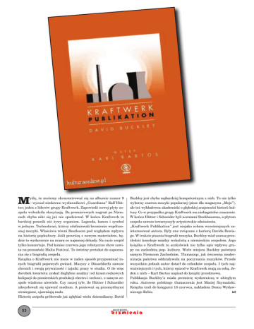 \ĂOÚĝHPRĝHP\VNRQFHQWURZDÊVLÚQDDOEXPLHQXPHU ļZ\]QDïQLHGDZQRZ\VïDQQLNRZLķ*XDUGLDQDĵ5DOI+đWWHUMHGHQ]OLGHUöZJUXS\.UDIWZHUN=DSRZLHGěQRZHMSï\W\]HVSRïXZ]EXG]LïDHNVF\WDFMÚ%RSUHPLHURZ\FKQDJUDñSR1LHPFDFK FK\ED QLNW VLÚ MXĝ QLH VSRG]LHZDï : NRñFX .UDIWZHUN WR EDUG]LHM SRPQLN QLĝ ĝ\Z\ RUJDQL]P /HJHQGD NDQRQ L V\PERO ZMHGQ\P7HFKQRNUDFLNWöU]\]GHğQLRZDOLEU]PLHQLHZVSöïF]HVQHMPX]\NL:ïDĂFLZLHUöZQL%HDWOHVRPSRGZ]JOÚGHPZSï\ZX QDKLVWRULÚSRSNXOWXU\-HĂOLSRZUöFÈ]QRZ\PPDWHULDïHPEÚG]LHWRZ\GDU]HQLHQDPLDUÚFRQDMPQLHMGHNDG\1DUD]LH]HVSöï W\ONRNRQFHUWXMH3RGNRQLHFF]HUZFDMHJRURERW\F]QHVKRZ]DZLWDQDSR]QDñVNL0DOWD)HVWLYDO7RĂZLHWQ\SUHWHNVWGR]DSR]QDQLDVLÚ]ELRJUDğÈ]HVSRïX .VLÈĝNDR.UDIWZHUNQLHPRĝHZĝDGHQVSRVöESU]\SRPLQDÊLQQ\FK ELRJUDğL SRSRZ\FK JZLD]G 0X]\F\ ] 'đVVHOGRUIX ]DZV]H FKURQLOLLVZRMÈSU\ZDWQRĂÊLWDMQLNLSUDF\ZVWXGLX2LOHZLÚF GRUREHNNZDUWHWX]\VNDïGRJïÚEQHDQDOL]\RGNUDXWURFNRZ\FK NROLJDFMLGRSLRQLHUVNLFKSURGXNFMLHOHFWURLWHFKQRRVDP\P]HVSROH ZLDGRPR QLHZLHOH &]\ UDF]HM W\OH LOH +đWWHU L 6FKQHLGHU ]GHF\GRZDOL VLÚ XMDZQLÊ PHGLRP $ SRQLHZDĝ VÈ SU]HP\ĂOQ\PL VWUDWHJDPLXMDZQLDMÈPDïR +LVWRULÚ]HVSRïXSUöERZDïRMXĝ]JïÚELDÊZLHOXG]LHQQLNDU]\'DYLG M 32 magazyn muzyczny %XFNOH\MHVWFK\EDQDMEDUG]LHMNRPSHWHQWQ\P]QLFK7RQLHW\ONR Z\ERUQ\]QDZFDPX]\NLSRSXODUQHMSLV]HGODPDJD]\QXķ0RMRĵ DOHWHĝZ\NïDGRZFDDNDGHPLFNLRJïÚERNLHM]QDMRPRĂFLKLVWRULLNXOWXU\&RZSU]\SDGNXJUXS\.UDIWZHUNPDQLHEDJDWHOQH]QDF]HQLH :NRñFX+đWWHUL6FKQHLGHUE\OLXF]QLDPL6WRFNKDXVHQDDSï\WRP ]HVSRïX]DZV]HWRZDU]\V]\ï\DUW\VWRZVNLHRGQLHVLHQLD ķ.UDIWZHUN3XEOLNDWLRQĵMHVWQLHMDNRHFKHPZF]HĂQLHMV]\FK]DLQWHUHVRZDñDXWRUD%\ï\RQH]ZLÈ]DQH]NDULHUÈ'DYLGD%RZLHJR:WUDNFLHSLVDQLDELRJUDğLPX]\ND%XFNOH\PLDïV]DQVÚSU]HĂOHG]LÊNRQHNVMHPLÚG]\ZRNDOLVWÈDQLHPLHFNLP]HVSRïHP-HJR NVLÈĝND R .UDIWZHUN WR DF]NROZLHN QLH W\ONR RSLV ZSï\ZX JUXS\ QD ]DFKRGQLÈ SRS NXOWXUÚ :LHOH PLHMVFD %XFNOH\ SRĂZLÚFD VDP\P1LHPFRP=DFKRGQLP7ïXPDF]ÈFMDNöZF]HVQDPRGHUQL]DFMD SDñVWZD RGG]LDï\ZDïD QD SRF]\QDQLD PX]\NöZ 3U]HGH ZV]\VWNLPMHGQDNDXWRUGRWDUïGRF]ïRQNöZ]HVSRïX,W\FKQDMZDĝQLHMV]\FKLW\FKNWöU]\HSL]RGZ.UDIWZHUNPDMÈ]DVREÈ-HGHQ]QLFKļ.DUO%DUWRVQDSLVDïGRNVLÈĝNLSU]HGPRZÚ 3XEOLNDFMD %XFNOH\ijD PLDïD SUHPLHUÚ Z\GDZQLF]È Z XELHJï\P URNX $XWRUHP SROVNLHJR WïXPDF]HQLD MHVW 0DFLHM 6]\PDñVNL .VLÈĝNDWUDğGRNVLÚJDUQLF]HUZFDQDNïDGHP'RPX:\GDZkil QLF]HJR5HELV brzmienia „ELEKTROWNIA” W ELEKTROWNI O statnio zainteresowałem się tym, jak działa elektrownia. Otworzyłem karty jednej z popularnych encyklopedii i szczególną moją uwagę zwróciły dwie definicje, które brzmiały w ten właśnie sposób – „elektrownia to zakład przemysłowy wytwarzający energię elektryczną przez przetwarzanie innych rodzajów energii” i „elektrownia to obiekt techniczny składający się z jednego lub kilku zespołów urządzeń służących do wytwarzania energii elektrycznej”. Owe twierdzenia są rzeczowe i wykorzystują zasób słów i wiedzy potrzebny do zrozumienia zasad działania elektrowni; jednak jako osoba, nie związana na co dzień z techniką, czułem wyraźny niedosyt emocjonalny – odpowiedź, którą uznałem za satysfakcjonującą, usłyszałem w sercu koncertu zespołu Kraftwerk, którego nazwa w tłumaczeniu z języka niemieckiego, oznacza właśnie „elektrownię”. Ten zespół-legenda – tak jest on określany przez wielu znawców tematu (zaznaczam, nie tylko inżynierów techniki) wystąpił w czerwcu br. w ramach Malta Festival Poznań w Starej Gazowni. Stylistyka brzmienia i prezentacji zespołu na poznańskiej scenie ciekawie wpisała się w idiom tegorocznego Festiwalu – „Oh Man, oh machine; człowiek – maszyna”. Publiczność przybyła na to wydarzenie z całej Polski nie była tylko widownią bądź słuchaczami. Po kilku taktach, które usłyszeliśmy ze sceny, staliśmy się częścią tego przedstawienia – teatru na nuty, obraz i wyobraźnię. Nie tylko za sprawą trójwymiarowych okularów, które otrzymał każdy z „aktorów”. Graliśmy w teatrze dźwięków, których taniec z każdym krokiem wyobraźni, przekonywał nas jak bardzo potrafimy być w swoich reakcjach ludźmi prostolinijnymi, a na ile maszynami. Tak też w mechanice uczuć przeżyliśmy ponad dwie godziny zmagań z tym, co domaga się w nas nieustannego odkrywania – tak jak spełnia się to w przypadku sztuki i techniki (nawiązując do myśli Martina Heideggera „O źródle dzieła sztuki”). Dla Kraftwerk takie „odkrywanie” rozpoczęło się w 1970 roku w Düsseldorfie i od tej pory jest ważnym „dźwiękiem” dla kolejnych pokoleń twórców i odbiorców elektronicznej muzyki. Ona zaś, jak słyszymy w sercach Kraftwerk, jest rytmem konkretnym, wręcz minimalistycznym, bez zbędnych uczuć które rozpraszają najważniejsze, emocje. Brzmienie (nie trzeba odnajdywać związku z tytułem tego czasopisma) zaś odbieramy jako szczere, choć przetworzone (tak jak wokale) przez syntezatory. Droga, którą przebyli nasi artyści jest wystarczająco długa jak szosa – tak realna, którą do nas przez czas pewien jechali jak i tytuł ich płyty z 1974 roku pt. „Autobahn”. Można w niej usłyszeć idiom „Mensch Maschine”, by przenieść się do „Computer World” – tego świata, który nie tylko w 1981 roku, jako nazwa płyty, stał się komputerowy; a jego dźwięki opisać miały przyszłość, w której maszyna stanie się ważniejsza od człowieka. Czy w rzeczywistości Malta Festiwal Poznań „maszyna stała się ważniejsza od człowieka” nie tylko ze względu na idiom festiwalu? Widziałem podczas koncertu futurystyczne kostiumy, prezentacje video i słuchaczy – jakby społeczeństwo informatyczne… i nie chcę odpowiedzieć na tak przedstawioną wątpliwość. Przywołam za to alternatywną definicję „muzycznej elektrowni” – otóż, Ralf Hütter, założyciel grupy mówi, że „kraft to energia, dynamika, a werk to praca, dzieło artysty”. Jakkolwiek można te słowa uznać za 