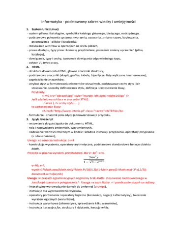 Informatyka - podstawowy zakres wiedzy i umiejętności