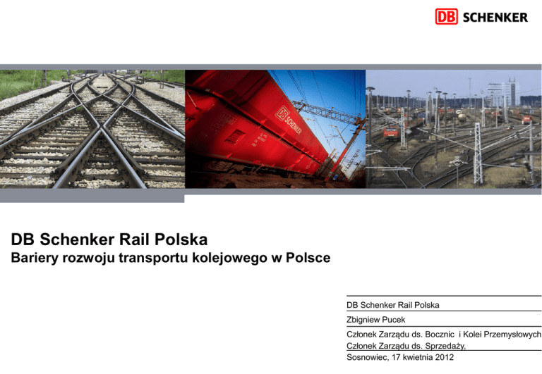 DB Schenker Rail Polska Bariery rozwoju transportu kolejowego w Polsce DB Schenker Rail Polska Zbigniew Pucek Członek Zarządu ds. Bocznic i Kolei Przemysłowych Członek Zarządu ds. Sprzedaży, Sosnowiec, 17 kwietnia 2012 Polska zajmuje istotne miejsce w układzie sieci międzynarodowych korytarzy transportowych Korytarze kolejowe w Polsce Rynek Kolejowy w Polsce Kolej w Polsce jest miejscem styku europejskiej sieci normalnotorowej 1435 mm z siecią szerokotorową 1520 mm. Korzystne tranzytowe położenie geograficzne Polski obejmujące linie o znaczeniu międzynarodowym, stanowiące element ponadnarodowych sieci i struktur. Poziom przewozu ładunków, mierzony tonokilometrami, lokuje polski transport kolejowy na drugim miejscu wśród 27 krajów UE za Niemcami, a przed Francją, z udziałem ok. 12% w ogólnych przewozach UE Polski rynek kolejowych przewozów towarowych jest jednym z najbardziej zliberalizowanych rynków w Europie 2 Mimo korzystnego położenia, w Polsce istnieje szereg barier hamujących rozwój rynku transportu kolejowego Stan infrastruktury kolejowej w Polsce Bariery rozwoju Wysokość stawek dostępu do infrastruktury Ograniczony dostęp do infrastruktury punktowej Polityka Państwa dot. rozwoju transportu kolejowego Podstawową przesłanką decydującą o wyborze kolei powinna być jej konkurencyjność w stosunku do innych środków transportu, w odniesieniu do czasu przejazdu, kosztów i bezpieczeństwa. Bariery rozwoju: Stan infrastruktury kolejowej w Polsce Zapewnienie rozwoju transportu w Polsce niesie za sobą konieczność: • rewitalizacji kolei • wyrównania konkurencyjności między poszczególnymi gałęziami transportu Oznacza to: • potrzebę udrożnienia ciągów kolejowych dla przewozów towarowych • zapewnienie połączeń pomiędzy najważniejszymi obszarami gospodarczymi kraju • poprawę dostępności transportu kolejowego w wymiarze międzynarodowym Procentowy podział linii kolejowych w Polsce: 37% linii jest w stanie dobrym – wymagana jedynie wymiana pojedynczych elementów nawierzchni, braku ograniczeń prędkości 38% linii jest w stanie dostatecznym – wymiana do 30% elementów nawierzchni, ograniczenia prędkości. 25% linii jest w stanie niezadowalającym kompleksowa wymiana nawierzchni, liczne ograniczenia prędkości Żródło: Biała Księga – Mapa problemów polskiego kolejnictwa 4 Bariery rozwoju: Stan infrastruktury kolejowej w Polsce – max. prędkości rozkładowe na liniach znaczenia państwowego Ograniczenia prędkości występują na wszystkich liniach, a ich łączna długość stanowi około 9% długości linii. Tylko na nieco ponad 5% długości torów (1 568 km) pociągi mogą być prowadzone z prędkością większą lub równą 160 km/h (będącą obecnie standardem europejskim). Średnia prędkość pociągów towarowych wynosi 20 km na godz. Zródło: Wieloletni program inwestycji kolejowych na lata 2010-2013 5 Bariery rozwoju: Stawki dostępu do infrastruktury kolejowej w Polsce 2004-2009 średni wzrost o 25% ponad dwa razy wyższa stawka niż w Niemczech stanowi 1/3 wszystkich kosztów transportu 2009/2010 Dla pociągów lekkich – do 25 wagonów – najczęściej obsługiwane przez PKP CARGO S.A. spadek o 25% Stawki dostępu PKP PLK Dla pociągów ciężkich – do 37 wagonów - najczęściej obsługiwane przez prywatnych przewoźników – średni wzrost o 5,9% 2011 Dalszy wzrost o ok. 17-18% dla pociągów ciężkich, i ok. 6-8% dla pociągów lekkich 2012 Projekt podwyżki stawek – w ujęciu ogólnym od ok. 6 do 60% w zależności od kategorii linii kolejowej oraz masy brutto pociągu. Source: www.kow.pl, www.rynek-kolejowy.pl, Rzeczpospolita 6 Bariery rozwoju: Koszt dostępu do infrastruktury jest nieadekwatny do oferowanej jakości Koszt dostępu do infrastruktury jest EUR/ntkm Km/h 6 60 5 50 4 40 3 30 2 20 1 10 0 0 Polska Europa Zachodnia Koszt dostępu do infrastruktury (EUR/ntkm) Średnia prędkość (km/h) Źródło: Rynek Kolejowy 7 nieadekwatny do oferowanej jakości: – Koszty dostępu są ponad dwa razy wyższe niż w krajach Europy Zachodniej – Jednocześnie średnia prędkość jest dwa razy mniejsza Pogarszający się stan infrastruktury oraz wysokość stawek dostępu wpływa na: – Zwiększenie ogólnych kosztów transportu, które przerzucane są na klientów – Zmniejszenie konkurencyjności transportu kolejowego względem transportu drogowego, co nadal będzie prowadziło do wzrostu udziału transportu drogowego w przewozach towarów ogółem Bariery rozwoju: Ograniczony dostęp do infrastruktury punktowej Zapewnienie niezależności zarządcy infrastruktury kolejowej zgodnie z prawem Unii Europejskiej, Państwo jest odpowiedzialne za rozwój infrastruktury kolejowej i zapewnienie niezależności zarządcy infrastruktury publicznej wyeliminowanie powiązań instytucjonalnych i organizacyjnych PKP PLK w ramach Grupy PKP Zapewnienie niedyskryminującego dostępu do infrastruktury punktowej brak równości dostępu i odpowiednich regulacji dotyczących dysponowania infrastrukturą punktową (stacje rozrządowe, przejścia graniczne, terminale rozładowcze itp.) istotne elementy infrastruktury punktowej są nadal w posiadaniu PKP CARGO, jak np..: terminale na granicy wschodniej Źródło: Biała Księga – Mapa problemów polskiego kolejnictwa Bariery rozwoju: Polityka Państwa dot. rozwoju transportu kolejowego w Polsce Przewoźnicy drogowi partycypują w utrzymaniu dróg w zdecydowanie mniejszym stopniu niż operatorzy pociągów w utrzymaniu infrastruktury. Olbrzymie różnice widoczne są Źródło: Biała Księga – Mapa problemów polskiego kolejnictwa w kwestii finansowania kolejowych projektów infrastrukturalnych – brak zbilansowanych programów Wieloletni Program Inwestycji Kolejowych na lata 20102013: łączne planowane wydatki rzędu 23 bln PLN (ok. 5,5 bln EUR) Planowane wydatki na infrastrukturę kolejową w Niemczech w kolejnych 5 latach – 44 bln EUR 9