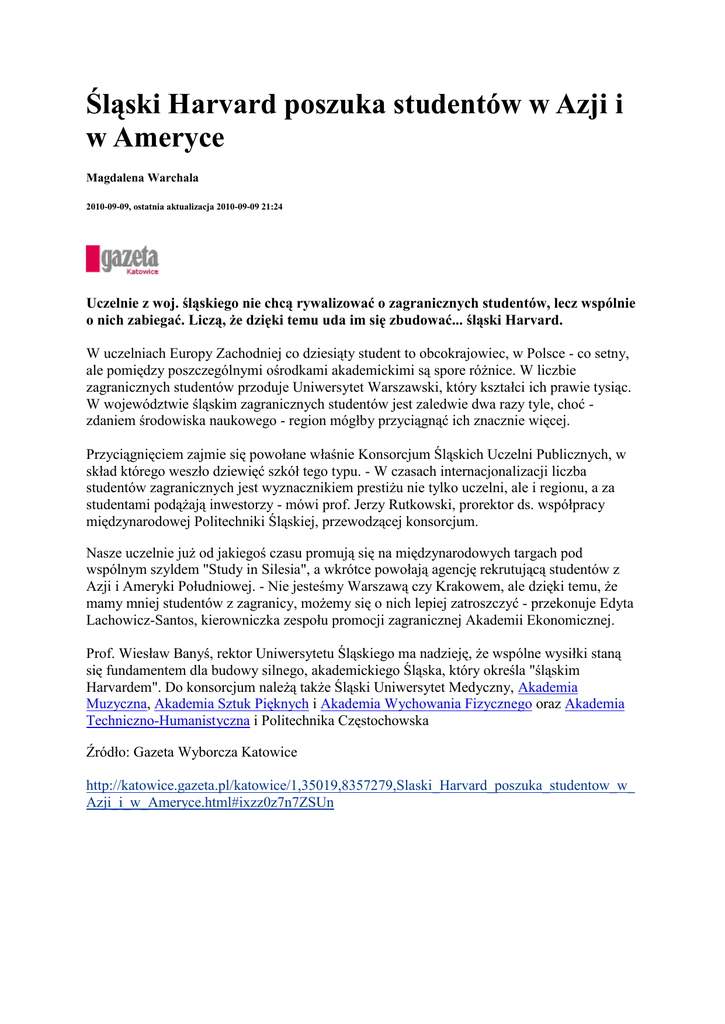 Śląski Harvard poszuka studentów w Azji iw Ameryce