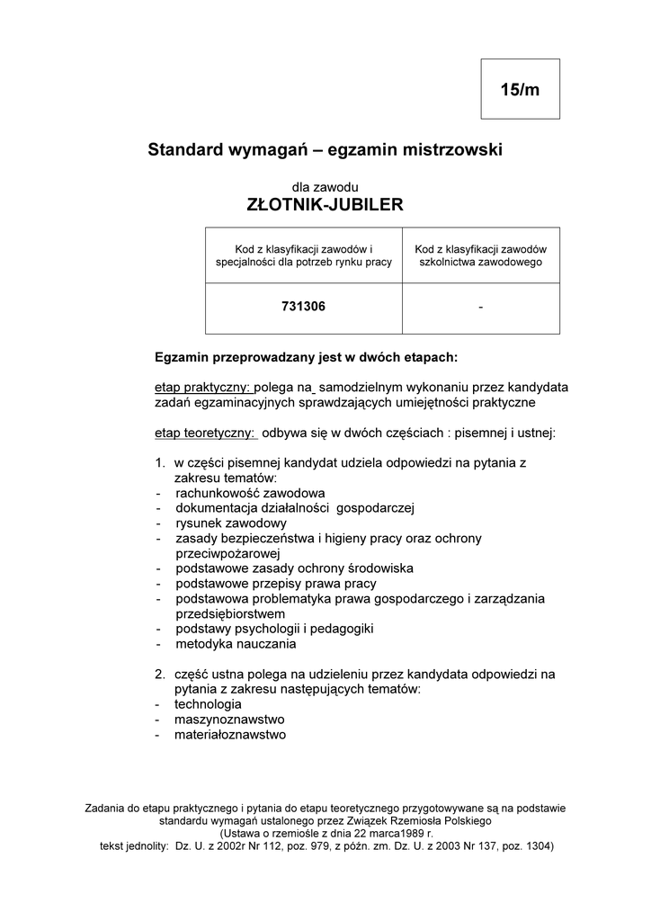 1 5/m Standard wymagań – egzamin mistrzowski ZŁOTNIK