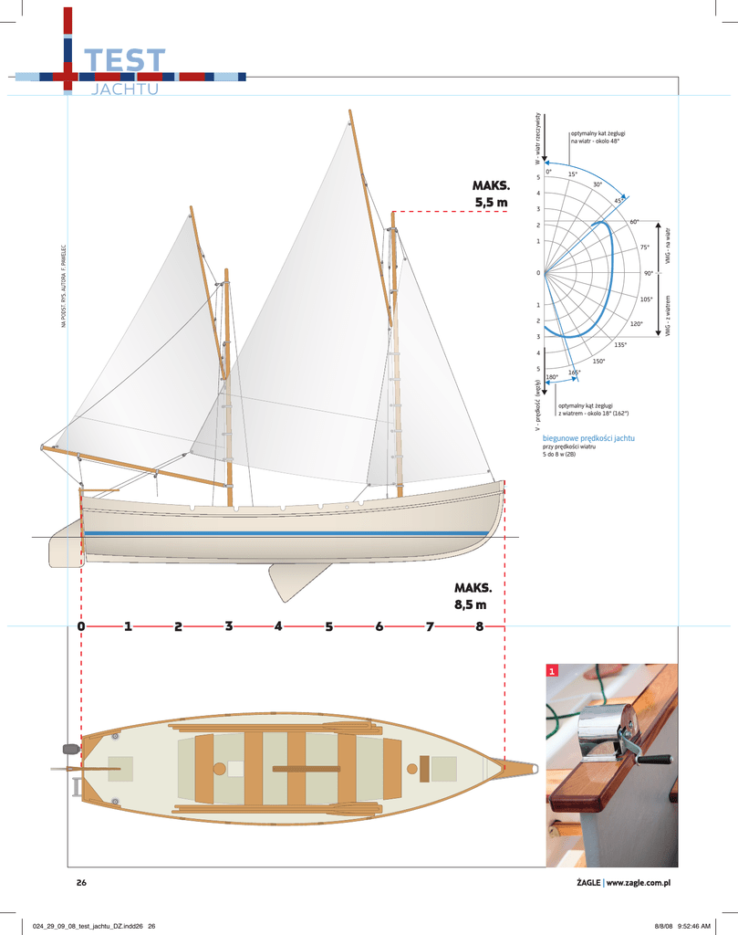 W - wiatr rzeczywisty 5 optymalny kat żeglugi na wiatr - okolo 48° 0° 15° 30° 4 45° 3 1 75° 0 VMG - na wiatr 60° 2 105° 1 2 120° 3 VMG - z wiatrem 90° 135° 4 150° V - prędkość (węzły) 5 180° 165° optymalny kąt żeglugi z wiatrem - okolo 18° (162°) biegunowe prędkości jachtu przy prędkości wiatru 5 do 8 w (2B) 024_29_09_08_test_jachtu_DZ.indd26 26 8/8/08 9:52:46 AM
