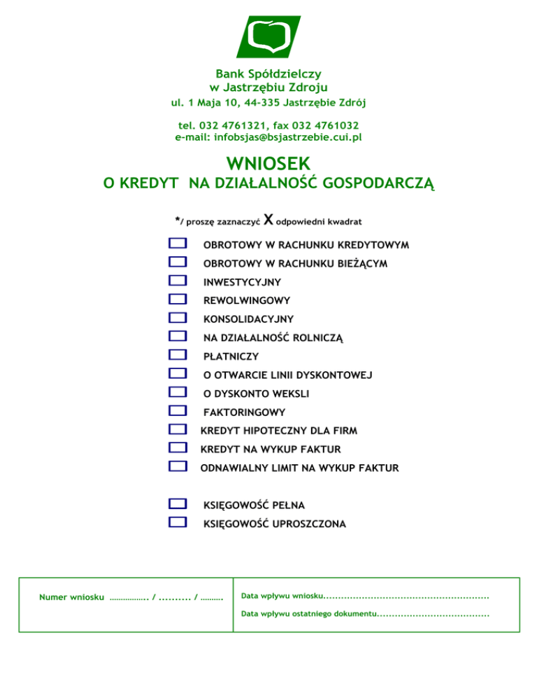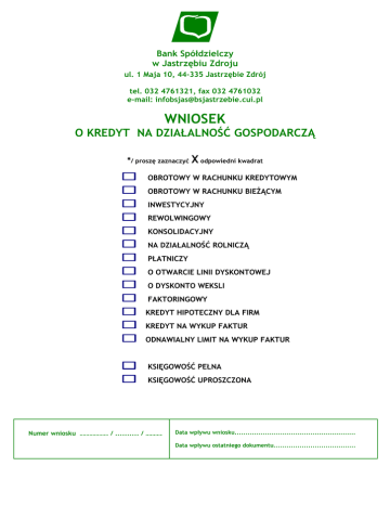 Wniosek kredytowy - Bank Spółdzielczy w Jastrzębiu Zdroju