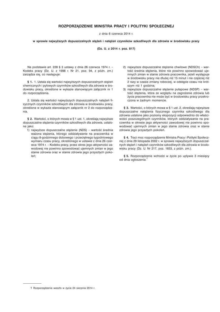 Dz. U. 2014_817 rozporządzenie Ministra Pracy i Polityki