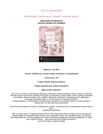 Już w sprzedaży Niezwykłe rozmowy o pasji i sztuce życia Agnieszka Drotkiewicz Jeszcze dzisiaj nie usiadłam Wydanie I, rok 2011 Format: 125x205 mm, oprawa miękka, foliowana, ze skrzydełkami Liczba stron: 331 Projekt okładki: Marianna Sztyma Projekt typograficzny: Robert Oleś/d2d.pl ISBN: 978-83-7536-241-1 Jak żyć? To z pozoru proste pytanie Agnieszka Drotkiewicz zadała dziesięciu różnym osobom. Usłyszała dziesięć różnych życiorysów, dla których osią jest czy była praca, sztuka, religia, natura. Dziesięć opowieści o pomyłkach, ślepych zaułkach, ale i wielkich odkryciach, olśnieniach, prowadzących do głębszego i lepszego zrozumienia tego, co w życiu ważne. O sprawach drobnych i fundamentalnych, o przełomowych wydarzeniach i spotkanych na drodze ludziach. A nade wszystko o zadanej nam na całe lata pracy dojrzewania. "Rozmowa jest według mnie jedną z największych wartości, a zarazem jedną z największych przyjemności w życiu". Agnieszka Drotkiewicz "Nikt nie powie sobie: 'A, będę żył bezsensownie!'. Być może wyjdę teraz na kogoś, kto się opowiada za przebrzmiałym już doświadczaniem świata, czy też sposobem bycia. Ale naprawdę myślę, że potrzeba samoogarniania się, rozumiana głębiej niż w duchu codziennej pielęgnacji; potrzeba spoglądania na siebie, jak na kogoś 'innego' - może nam przynosić odrobinę pewności." prof. Roch Sulima, fragment książki " Musimy się zdobyć na pokorę, przyznać, że nic nie wiemy. Strasznie trudno to zrobić po trzydziestce i czterdziestce, ale jeszcze trudniej zrobić to zaraz po studiach. Wtedy dopiero nam się wydaje, że wszystko wiemy! Wtedy mamy dopiero poukładane, wtedy rzucamy się z motyką na słońce". Monika Richardson, fragment książki "Camus wyobrażał sobie Syzyfa jako człowieka szczęśliwego. Ale to nie jest szczęście kogoś pozbawionego wiedzy o własnych ograniczeniach, kogoś, kto nie zna swojego losu. Wręcz przeciwnie, szczęście Camusowskiego Syzyfa rodzi się ze znajomości trudnego losu, z niego rodzi się też honor, poczucie własnej wartości Syzyfa". Basil Kerski, fragment książki Agnieszka Drotkiewicz (ur. 1981) ukończyła stosunki międzykulturowe oraz kulturoznawstwo na Uniwersytecie Warszawskim. Opublikowała powieści Paris London Dachau, Dla mnie to samo i Teraz. Razem z Anną Dziewit opublikowała dwa zbiory rozmów: Głośniej! Rozmowy z pisarkami oraz Teoria trutnia i inne. W sezonie 2009/2010 była kuratorką cyklu spotkań literackich Daleko od Wichrowych Wzgórz w Teatrze Dramatycznym w Warszawie. Redaktorka i współautorka książki podsumowującej te spotkania (Daleko od Wichrowych Wzgórz). 15 kwietnia Barwne historie ze stambulskiego mostu Geert Mak Most Seria: Sulina Wydanie I, rok 2011 Format: 125x195 mm, oprawa miękka, lakierowana, ze skrzydełkami Liczba stron: 144 Projekt okładki: Agnieszka Pasierska/Pracownia Papierówka Projekt typograficzny: Robert Oleś/d2d.pl ISBN: 978-83-7536-247-3 Przekład z języka niderlandzkiego Małgorzata Diederen-Woźniak Bohaterowie Maka to stali bywalcy mostu Galata - właściciel kramu z wkładkami do butów, sprzedawca książek, chłopiec handlujący papierosami, dziewczyna rozprowadzająca losy, stary tragarz, hiszpańska para na emeryturze. Rozmowy z nimi stają się dla holenderskiego pisarza pretekstem do wycieczek w czasie, które przybliżają nam fascynującą historię tego symbolu Stambułu. Losy życiowe pracujących na moście ludzi są papierkiem lakmusowym nastrojów społecznych wynikających z zamożności, wykształcenia czy wyemancypowania. Wszystkich rezydentów mostu, barwnych i tak bardzo różnych, łączy niezwykłe poczucie dumy i honoru, podszyte tęsknotą za rodzinnymi stronami, z których przybyli, by zaznać lepszego życia. Wspólny jest także obraz Europejczyków, jaki tworzą sobie ci dawni mieszkańcy Bizancjum, rozdarci - jak Stambuł - między dwoma brzegami: bliską sercu Turcją i dalekim obyczajowo, lecz kuszącym Zachodem. "Nie ma chyba lepszej metafory współczesnej Turcji niż most: konstrukcja, która spina to, czego inaczej spiąć nie sposób. Każdy Turek ma w sobie takie mosty: między tym, co nowoczesne, a tradycją; tym, co religijne, a ateizmem; tym, co europejskie, a Orientem. I każdy Turek większość życia spędza, chodząc po tych swoich mostach tam i z powrotem". Witold Szabłowski "'Nienawidzę podróży i podróżników' - pisał Claude Levi-Strauss, dlatego autor Mostu nie rusza się z miejsca. Za to jakiego! Most Galata w Stambule jest esencją nie tylko tego "miasta miast", lecz właściwie całej Turcji. Geert Mak działa jak wytrawny artysta reportażu, na pięciuset metrach odnajduje wszystkich bohaterów panoramy społecznej. Zauważa to, co umyka uwadze turysty, który pędzi w poszukiwaniu egzotycznych atrakcji. Ludzi skulonych w deszczu, głodnych, próbujących przeżyć kolejny dzień. Rozmowę z człowiekiem zderza z lekturą książek historycznych. Chylę czoła!" Max Cegielski Geert Ludzer Mak urodził się w 1946 roku w holenderskim mieście Vlaardingen. Jest historykiem i prawnikiem oraz cenionym na świecie pisarzem i dziennikarzem. Napisał kilkanaście książek, z których najważniejsze to: De engel van Amsterdam (1992), Een kleine geschiedenis van Amsterdam (1994), Hoe God verdween uit Jorwerd (1996) oraz De eeuw van mijn vader (1999). Po polsku ukazała się jego książka W Europie (2009). Mak jest laureatem Lipskiej Nagrody Literackiej dla Porozumienia Europejskiego 2008. Most to jego najnowsza książka (2007) poświęcona mostowi Galata łączącemu dwa brzegi Złotego Rogu w Stambule. 18 kwietnia Fascynujące reportaże o najmniej znanym europejskim sąsiedzie Marcin Michalski, Maciej Wasielewski 81:1. Opowieści z Wysp Owczych Seria: Reportaż Wydanie I, rok 2011 Format: 125x195 mm, oprawa miękka, foliowana i lakierowana, ze skrzydełkami Liczba stron: 328 Projekt okładki: Agnieszka Pasierska/Praco