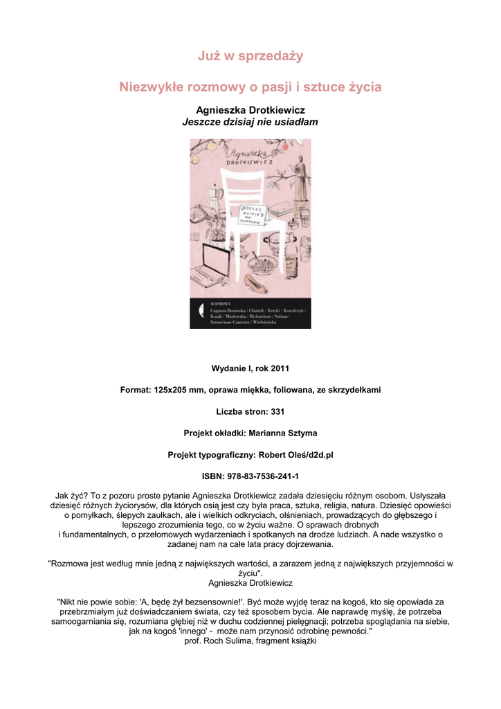 Już w sprzedaży Niezwykłe rozmowy o pasji i sztuce życia
