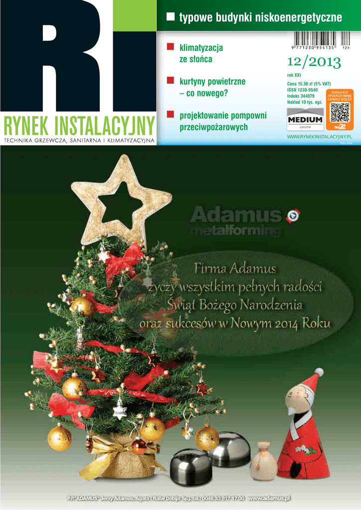 typowe budynki niskoenergetyczne klimatyzacja ze słońca kurtyny powietrzne – co nowego? projektowanie pompowni przeciwpożarowych 12/2013 rok XXI Cena 15,50 zł (5% VAT) ISSN 1230-9540 SKANUJ KOD APLIKACJĄ Indeks 344079 I ZOBACZ WIĘCEJ! Nakład 10 tys. egz. GRUPA WWW.RYNEKINSTALACYJNY.PL REKLAMA MIESIĘCZNIK INFORMACYJNO-TECHNICZNY ISSN 1230-9540, nakład 10 000 GRUPA Wydawca Grupa MEDIUM www.medium.media.pl Adres redakcji 04-112 Warszawa, ul. Karczewska 18 tel./faks 22 512 60 75 do 77 e-mail: [email protected] www.rynekinstalacyjny.pl Redaktor naczelny Waldemar Joniec, tel. 502 042 518 [email protected] Sekretarz redakcji Agnieszka Orysiak, tel. 600 050 378 [email protected] Redakcja Jerzy Kosieradzki (red. tematyczny), Aleksandra Cybulska (red. portalu internetowego), Joanna Korpysz-Drzazga (red. językowy), Janina Myckan-Cegłowska (red. statystyczny), Katarzyna Rybka (red. tematyczny), Jacek Sawicki (red. tematyczny), Bogusława Wiewiórowska-Paradowska (red. tematyczny) Reklama i marketing tel./faks 22 810 28 14, 512 60 70 Dyrektor biura reklamy i marketingu Joanna Grabek, [email protected] Dyrektor ds. marketingu i sprzedaży Michał Grodzki, [email protected] Kolportaż i prenumerata tel./faks 22 512 60 74, 810 21 24 Specjalista ds. prenumeraty Jerzy Lachowski, [email protected] Prenumerata realizowana przez RUCH S.A. Zamówienia na prenumeratę w wersji papierowej i na e-wydania można składać bezpośrednio na stronie www.prenumerata.ruch.com.pl. Ewentualne pytania prosimy kierować na adres e-mail: [email protected] lub kontaktując się z Telefonicznym Biurem Obsługi Klienta pod numerem: 801 800 803 lub 22 717 59 59 – czynne w godzinach 7.00 – 18.00. Koszt połączenia wg taryfy operatora. Administracja Danuta Ciecierska (HR), Barbara Piórczyńska (gł. księgowa) Skład, łamanie [email protected] Druk Zakłady Graficzne TAURUS Redakcja zastrzega sobie prawo do adiustacji tekstów i nie zwraca materiałów niezamówionych. Redakcja nie ponosi odpowiedzialności za treść reklam i ogłoszeń, ma też prawo odmówić publikacji bez podania przyczyn. Wszelkie prawa zastrzeżone © by Grupa MEDIUM. Rozpowszechnianie opublikowanych materiałów bez zgody wydawcy jest zabronione. Wersja pierwotna czasopisma – papierowa. Za publikację w „Rynku Instalacyjnym” MNiSW przyznaje jednostkom naukowym 5 punktów Wskazówki dla autorów i procedura recenzowania artykułów na rynekinstalacyjny.pl/redakcja Grupa MEDIUM jest członkiem Izby Wydawców Prasy Od Redaktora Koniec roku to czas podsumowań. Początek roku nie był najlepszy, ale potem gospodarka ruszyła do przodu. Jednak budownictwo nie wystartowało w takim tempie, jak byśmy chcieli. Wpływ na to miał m.in. fakt, że w sferze infrastrukturalnej mamy końcówkę poprzedniego rozdania dużych środków publicznych i czekamy na nowe. Im bliżej końca roku, tym bardziej widoczne było ożywienie w branży instalacyjnej – zarówno ze strony klientów indywidualnych, jak i firm instalacyjnych. Na poprawę wyników budownictwa mieszkaniowego w końcu roku wpłynęły m.in. planowane od nowego roku zmiany zasad udzielania kredytów hipotecznych – nie będzie już pożyczek na 100% wartości mieszkania. Nie był to zły okres pod względem liczby oddanych i sprzedanych mieszkań, ale trochę gorzej było z liczbą uzyskanych nowych pozwoleń i rozpoczętych budów. A to nie rokuje dobrze na 2014. Coraz więcej jest tych, którzy za źródło problemów uważają nie tylko kondycję gospodarki, ale też prawo, złe i niestabilne. Każdy ruch w sferze regulacji dla budownictwa i związanych z nim podatków, ulg, zasad udzielania kredytów itp. powoduje duże wahania na rynku – a to świadczy o tym, że społeczeństwo traci zaufanie do działań rządu niezależnie od jego intencji. Na przykład akcje „wspomagania” mniej zasobnych i młodych w nabyciu mieszkania spowodowały, że paradoksalnie coraz więcej mieszkań kupowanych jest za gotówkę. Podwykonawcy budujący drogi protestują. Kłopoty mają też duzi, generalni wykonawcy. Przedstawiciele władz kilku państw UE wyrażają zaniepokojenie praktyką polskich zamówień publicznych na duże roboty budowlane i sposobami ich rozliczania. Na rynku zamówień dominuje kryterium najniższej ceny, zwyciężają ryzykanci dyktujący zaniżone wartości inwestycji. Czym sobie to potem rekompensują? Jakością prac i „współpracą” z podwykonawcami. A to destabilizuje cały sektor budowlany, rwie się łańcuch zaufania i przepływu środków. Z tworzeniem prawa i dostosowaniem go do aktualnych potrzeb jest od kilku lat problem. Wprawdzie upraszczany jest proces budowlany, ale w tempie budowy średniowiecznych katedr, a nie na miarę XXI wieku. Coraz bardziej wpływa na budownictwo także brak ustaw dotyczących energii odnawialnej, charakterystyki energetycznej budynków oraz aktów wykonawczych. To powoduje niepewność i wyczekiwanie. A są to akty prawne, bez których nie skorzystamy w pełni z unijnych środków w najbliższych latach. Za parę lat będziemy zobligowani do stawiania budynków o nieomal zerowym zużyciu energii. Jakie one będą i co właściwie oznacza prawie zerowe zużycie? UE dała poszczególnym państwom wiele swobody w kwestii ustalenia tych zasad. Miały one opracować krajowe plany działań zwiększenia liczby budynków o niemal zerowym zużyciu energii. Czy taki plan stworzyliśmy? Oby się nie okazało, że winą będziemy znów obarczać urzędników w Brukseli. W stanowieniu prawa odważny krok wykonał Kraków − wprowadził zakaz instalowania urządzeń do ogrzewania na paliwa stałe. Program zastąpienia istniejących pieców i kotłów potrwa 10 lat. To samo czeka wiele innych polskich miast. To dobra perspektywa dla naszego zdrowia, ale też dla branży instalacyjnej. I tak trzeba patrzeć na przyszłość, z optymizmem − łączę życzenia wesołych świąt Bożego Narodzenia i pomyślności w nowym roku. SPIS