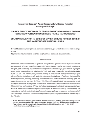 Katarzyna Szopka*, Anna Karczewska*, Cezary Kabała*, Katarzyna