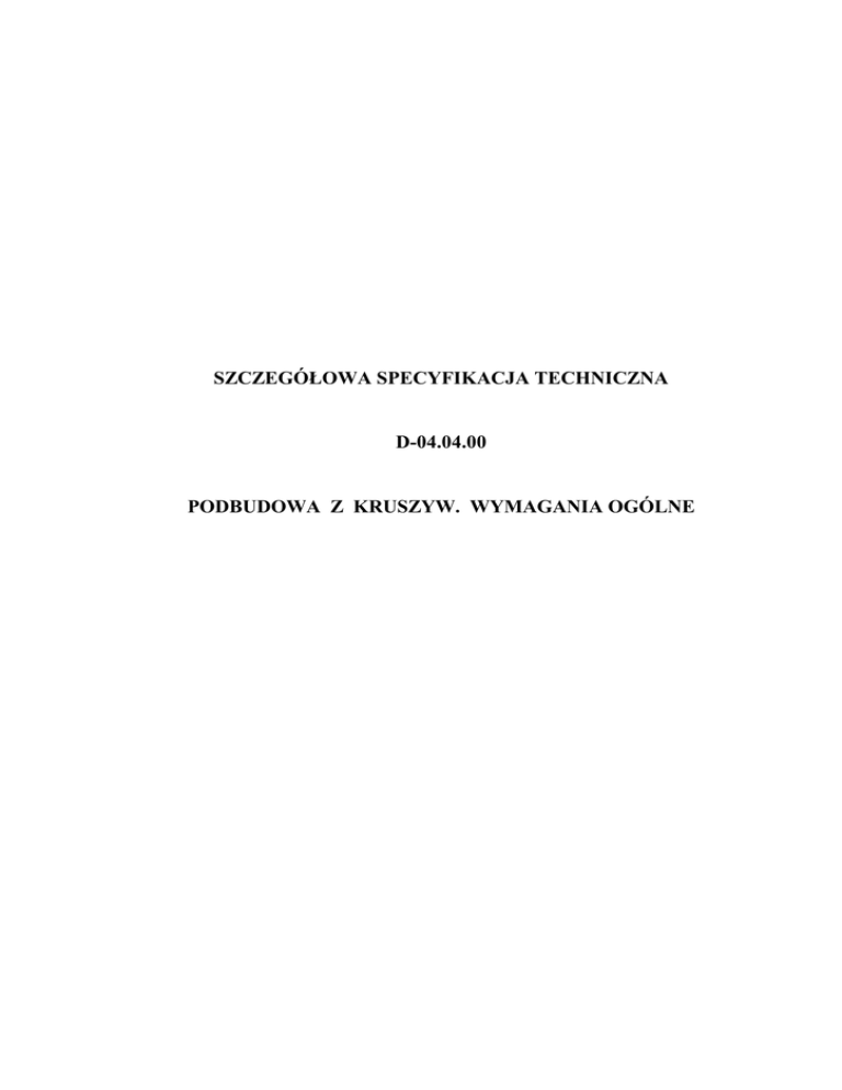 D.04.04.00 PODBUDOWA Z KRUSZYW. WYMAGANIA OGÓLNE