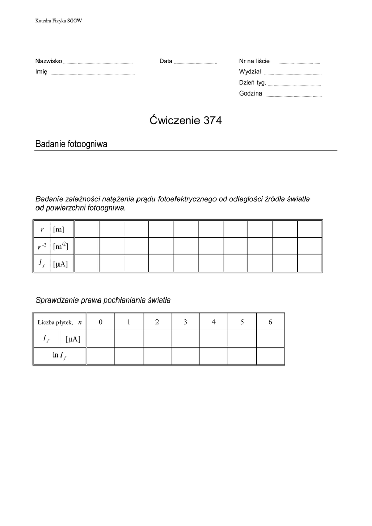 374 – instrukcja ćwiczenia: Badanie fotoogniwa