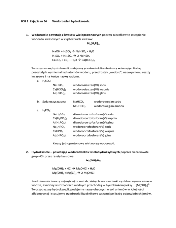 LCH 2 Zajęcia nr 24 Wodorosole i hydroksosole. 1. Wodorosole
