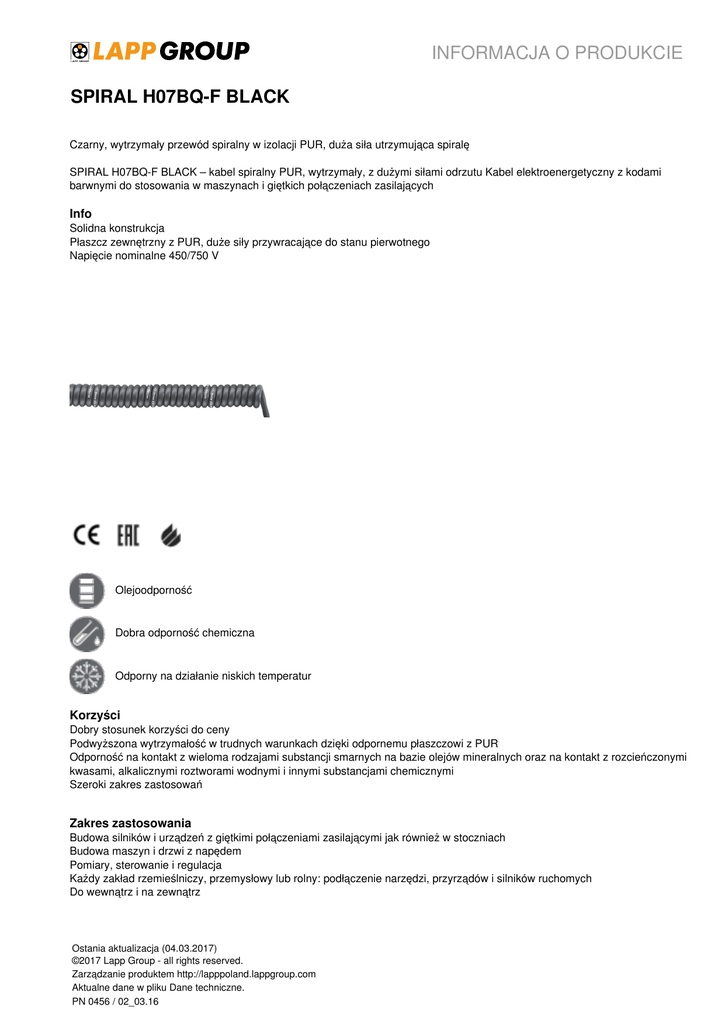INFORMACJA O PRODUKCIE SPIRAL H07BQ-F BLACK