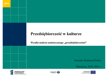 2011 Przedsiębiorczość w kulturze Wyniki audytu semiotycznego „przedsiębiorczości” Semiotic Solutions Polska Warszawa, 20.01.2011 r. Jak zmieniali się przedsiębiorcy Producenci, właściciele 2 Finansiści Kreatorzy trendów Przedsiębiorca z polskiej perspektywy Reakcjonista, syjonista, kułak Badylarz Cinkciarz Pan z teczką i komórką „Luzaki” w sweterkach Nowobogacki Młodzi z notebookami Hurtownik Serwis/sklep internetowy P.P.H.U 3 Część pierwsza KODY PRZEDSIĘBIORCZOŚCI 4 RESIDUAL Doświadczenie, kapitał, zasoby, środki, reguły Pracowitość, droga, wspinanie się po szczeblach, strategie, walka DOMINANT Pomysł, idea, kreatywność, świeŜość, łamanie stereotypów, innowacyjność, dynamizm, pasja, fantazja EMERGENT Styl Ŝycia, nowe wspólnoty, niezaleŜność, samosterowność, kontrola nad własnym Ŝyciem, nowe zasady etyczne - tworzenie lepszego świata, geniusz, intuicja i instynkt Część druga DYSKURSY O PRZEDSIĘBIORCZOŚCI 8 Zaszłości historyczne i obecne dyskursy negatywnie wpływające na przedsiębiorczość Na celowniku Ostatnia deska ratunku Złodziej, oszust i krwiopijca Samotny wojownik PRZEDSIĘBIORCZOŚĆ Przedsiębiorca kontra pracownik Antyrodzinna przedsiębiorczość Gąszcz formalności 9 Przedsiębiorczość jako niechciana postawa Złodziej, oszust i krwiopijca Ostatnia deska ratunku 10 Na celowniku Potępiona przedsiębiorczość Język obecnej komunikacji zachęcającej do przedsiębiorczości Jezyk stosuje konwencje ze współczesnej komunikacji marketingowej - sprzedaŜy produktów, promocji, okazji, wyprzedaŜy. Przedsiębiorczość staje się towarem do zbycia. RównieŜ silne są elementy kultury celebrytów - casting, Ŝyciowa przygoda, szansa na sukces, mam talent. Przedsiębiorczość staje się tu rodzajem autokreacji. Wątki języka i kultury młodych odnoszące się do zabawy, kreacji, sposób na inność, wyróŜnienie się. Przedsiębiorczość to stan zabawy, rozrywki bez zobowiązań. Komunikacja ta choć odwołuje się do współczesnego języka i konwencji nie dotyka i nie rozwiązuje kluczowych dla obrazów przedsiębiorczości problemów 11 Część trzecia BARIERY I WSKAZANIA KOMUNIKACYJNE 12 Polska kultura przedsiębiorczości jest w fazie przechodzenia od „starej” do „nowej przedsiębiorczości” „Stara” przedsiębiorczość 13 „Nowa” przedsiębiorczość Oficjalność, powaga Luz, nieoficjalność Luksus, wyŜsze sfery Codzienność Rutyna, doświadczenie ŚwieŜość, kreatywność Przedsiębiorca-producent Idee, usługi Męskość, racjonalizm Pierwiastek Ŝeński Walka, poŜeranie Współpraca Wspinanie się po sukces RównowaŜenie Ŝycia Pracodawca vs pracownik Pracodawca i pracownik Bogacenie się Zarabianie na Ŝycie Obowiązek Pasja Cel uświęca środki Czyste zasady Dla realizacji celów kampanii, a więc: •poprawienia wizerunku przedsiębiorcy, •uczynienia przedsiębiorcy „jednym z nas” •komunikowania działalności gospodarczej jako sposobu na stabilność finansową, niezaleŜność i realizację własnych pomysłów •przekonywania, Ŝe prowadzenie działalności nie jest trudne niezbędne jest promowanie wartości związanych z „nową” przedsiębiorczością Nie jest to moŜliwe bez „rozprawienie się” ze stereotypami hamującymi przedsiębiorczość obecnymi w „starej” przedsiębiorczości - w dzisiejszej sytuacji jest to najwaŜniejsze zadanie kampanii reklamowej 14 Pastisz, parodia i humor to najwaŜniejsze narzędzia tej kampanii • Pastisz tradycyjnej stylistyki biznesowej - uwydatnienie, wyostrzenie cech charakterystycznych takich jak wspinanie się na szczyt, konsumowanie sukcesu, rutyna, biznesowy guru, itd. • • Parodiowanie idei zawartych w „starej” przedsiębiorczości • 15 Zestawianie ich i kontrastowanie z nowymi ideami: świeŜością, kreatywnością, optymizmem, pasją Parodia i śmiech jako kulturowy mechanizm „poŜegnania starego” Jak w komunikacji osłabiać bariery kulturowe (1 z 3) Powaga i oficjalność przedsiębiorczości Przedsiębiorca jako producent Sposób na bezrobocie Język oficjalny czyni przedsiębiorczość światem „za kurtyną”, niedostępną, nie dla zwykłych ludzi, nie dla mnie Zbyt duŜa koncentracja na zasobach, standardach nie pozwala w pełni zaistnieć ideom kreatywności, wyobraźni, fantazji, innowacyjności Przedsiębiorczość w kontekście„pośredniaka” zostaje zdegradowane do czynności ostatecznej - to najniŜszy szczebel a nie alternatywa Stosować elementy z przestrzeni nieoficjalnej: •głupie zwyczaje •elementy kiczu •błędy językowe, potoczne •plotki •domowość •elementy karnawału Ukazywać rolę tego, co niematerialne i nieuchwytne w tworzeniu własnego biznesu. Unikać wszelkich akcji i komunikacji łączących przedsiębiorczość ze „sposobem na bezrobocie” W krzywym zwierciadle pokazywać stereotypy przedsiębiorczości oparte na zasobach, wielkim kapitale, liniach produkcyjnych, kulcie maszyny i środków trwałych Koncentrować się na wartościach „sposób na Ŝycie”. Łączyć przedsiębiorczość z nowoczesnym stylem Ŝycia. 16 Jak w komunikacji osłabiać bariery kulturowe (2 z 3) „Prawdziwa przedsiębiorczość” to męskość Samotność przedsiębiorcy Antyrodzinna przedsiębiorczość Zbyt duŜy nacisk na męski charakter przedsiębiorczości Polski problem kulturowy - robienie wszystko samemu a w efekcie rosnące poczucie ogromu rzeczy, formalności i przeszkód z którymi przedsiębiorca musi zmagać się sam Przekonanie, Ŝe przedsiębiorczość jest dla tych, którzy mogą poświęcić cały swój czas i nie mają nic do stracenia hamuje myślenie o własnej przedsiębiorczości jako elemencie normalnego Ŝycia Ośmieszać ideę „zrób to sam” Ukazywać, Ŝe rodzinność i przedsiębiorczość nie przeczą sobie Tymczasem nowe kody silniej preferują pierwiastek Ŝeński Odwoływać się do cech przeciwstawnych tradycyjnej m